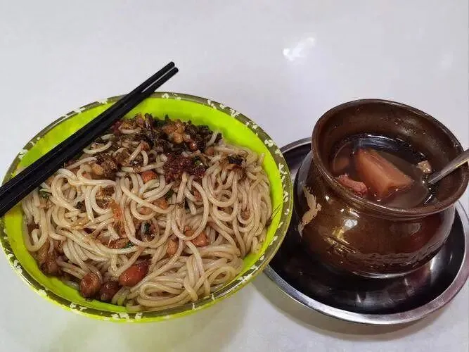 早上别折腾,找一家居民区边上的粉店,点拌粉加瓦罐汤。拌粉筋道,酱香里带一点蒜气,汤入口是暖的,不厚重,喝完人就醒了。再加个油条也行,脆一下,早晨就有了精神头。别追榜单,排队久的不一定更合口。