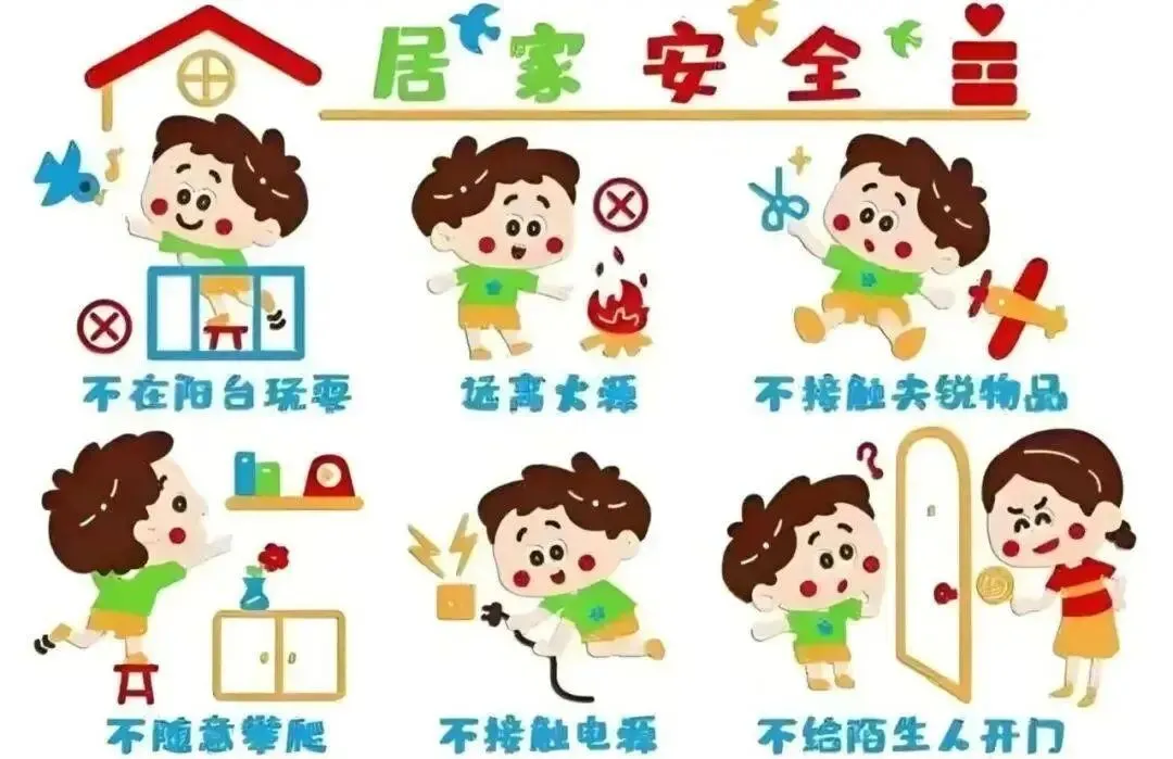 加强孩子居家安全管理,做好家庭安全隐患排查。教育孩子不触碰电源、插座、燃气、刀具等危险物品,防止触电、燃气泄漏、划伤等事故;不攀爬阳台、窗户、外墙,谨防高空坠落意外。提醒孩子独自在家时,不给陌生人开门,不轻易相信陌生人的话,牢记家长联系方式、110、120 等急救电话,遇到危险第一时间向家长、警察求助。
