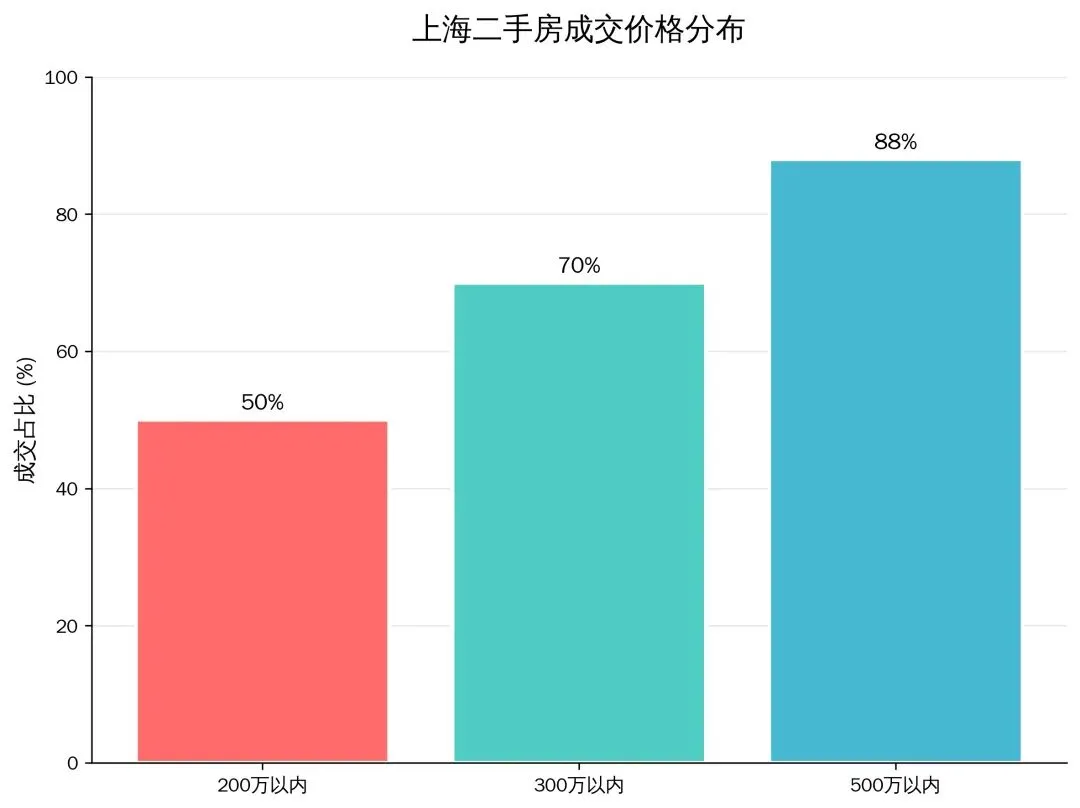 · 总价结构:200万以内房源占比达50%,300万以内占比70%,500万以内占比高达88%。