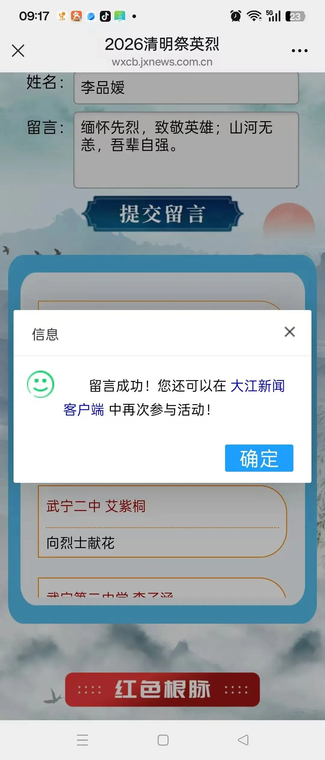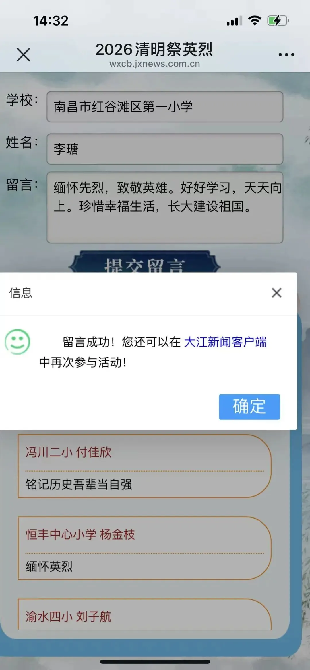 同学们在家长的协助下,登录“江西文明网”等线上平台,通过“云端”瞻仰革命烈士纪念碑,学习英烈事迹。大家纷纷在线献花、鞠躬,并留下真挚的寄语:“英雄永垂不朽,吾辈当自强”“感谢你们的牺牲,换来我们今天的幸福生活”……一句句发自肺腑的留言,汇聚成缅怀英烈、赓续奋斗的强大精神力量。