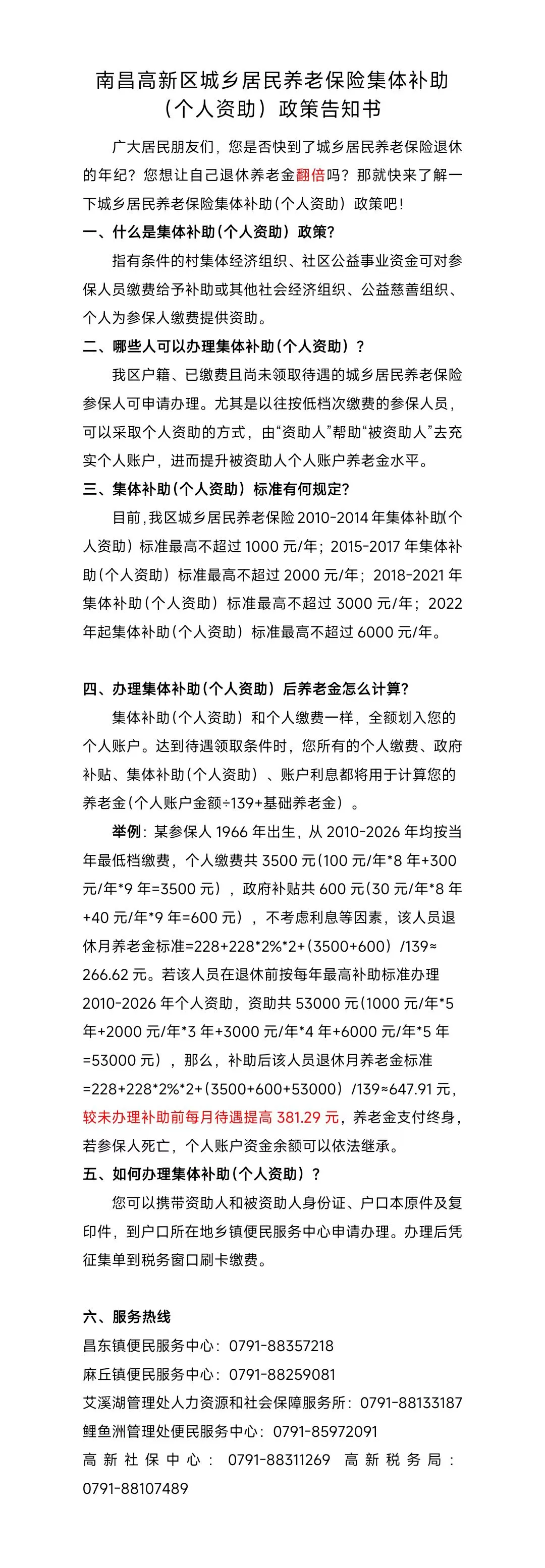 >南昌高新区城乡居民养老保险集体补助(个人资助政策告知书