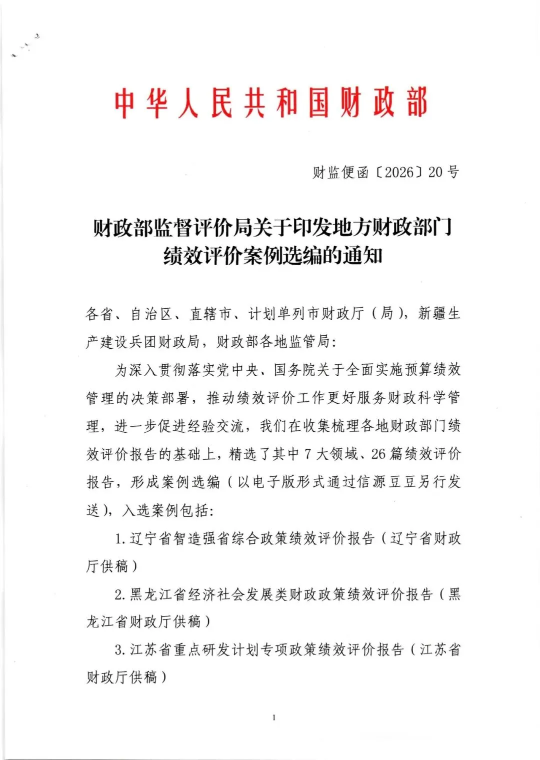 喜报!南昌市财政局一案例入选财政部地方财政部门绩效评价案例选编