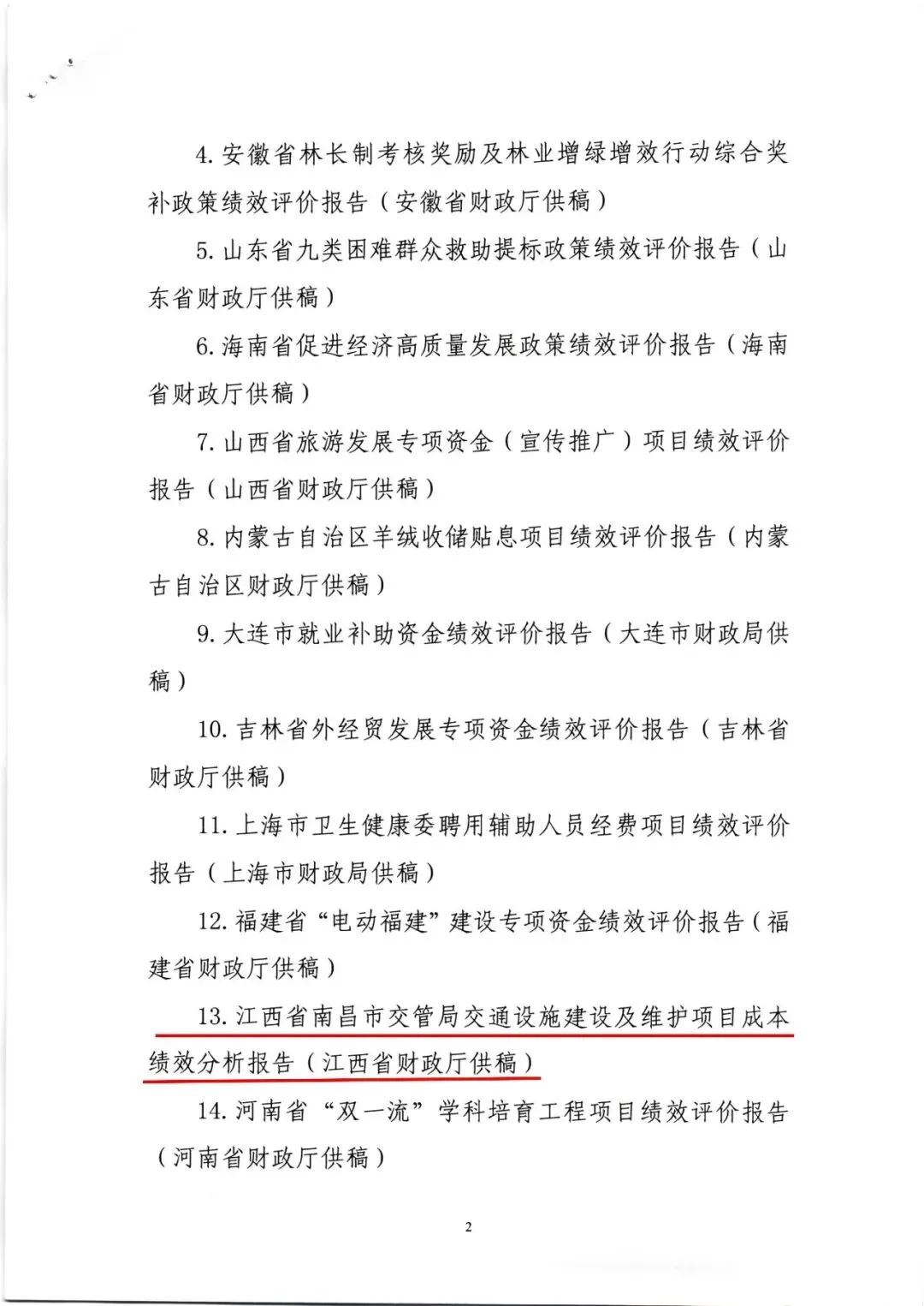 为深入贯彻落实全面实施预算管理的决策部署,推动绩效评价工作更好服务财政科学管理,近日,财政部在全国范围内精选了7个领域、26篇绩效评价报告纳入《地方财政部门绩效评价案例选编》。其中,由南昌市财政局提供的“江西省南昌市交管局交通设施建设及维护项目成本绩效分析报告”成功入选。
