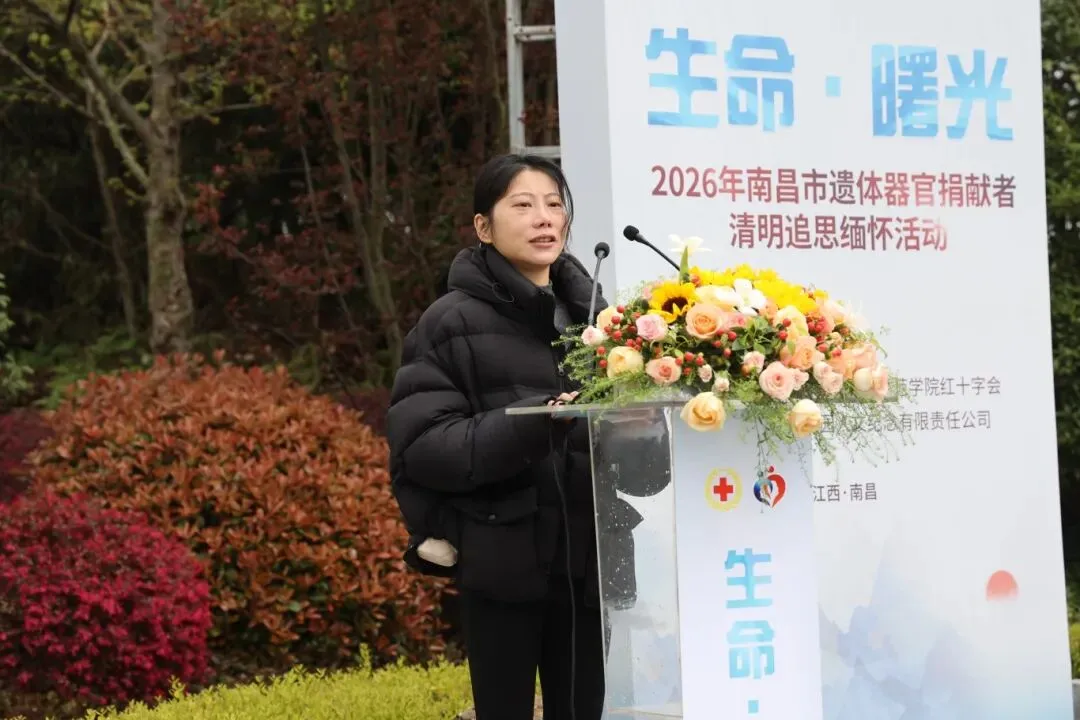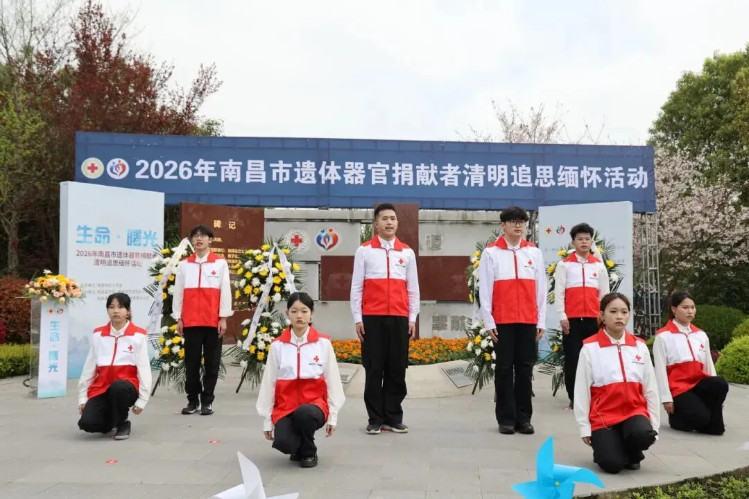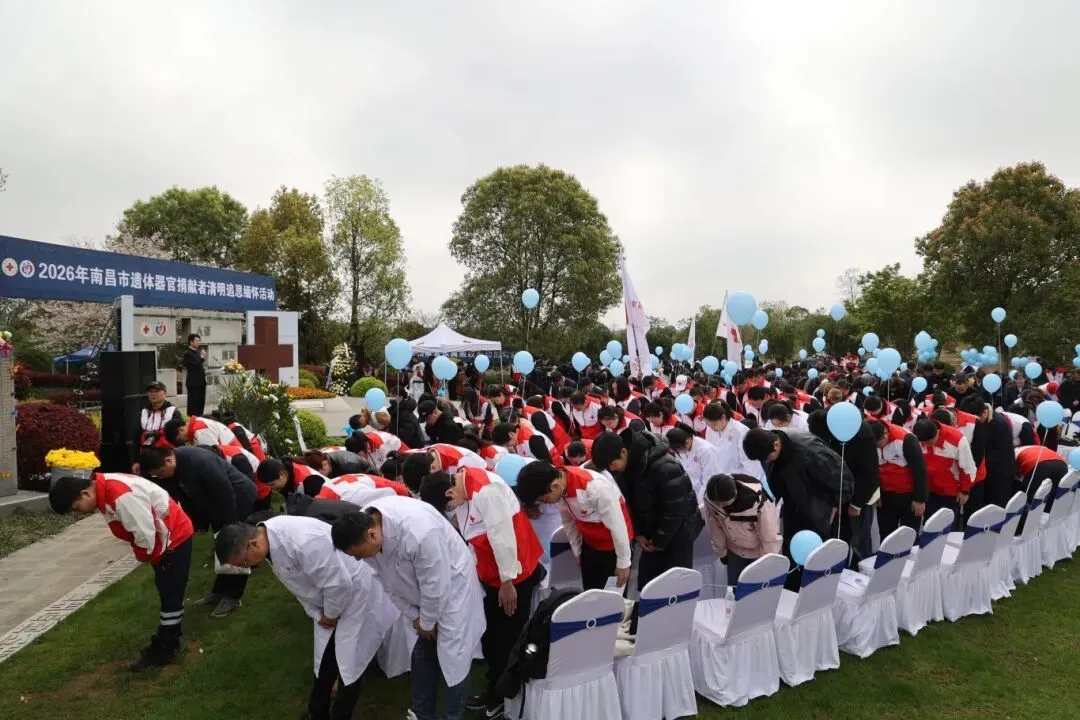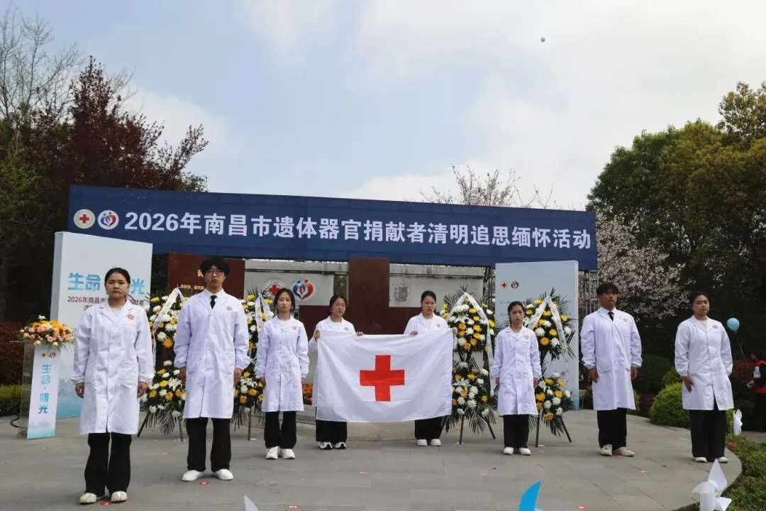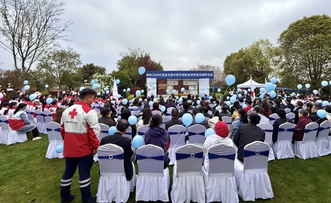为深切缅怀遗体器官捐献者,传承无私奉献的大爱精神,4月1日上午,由南昌市红十字会主办,南昌医学院、豫章师范学院红十字会、南昌福寿园人文纪念有限责任公司协办的“生命·曙光”2026年南昌市遗体器官捐献者清明追思缅怀活动,在南昌市遗体器官捐献者纪念园庄重举行。全市遗体器官捐献者家属、红十字工作者、志愿者、高校师生等代表近300人参与活动。