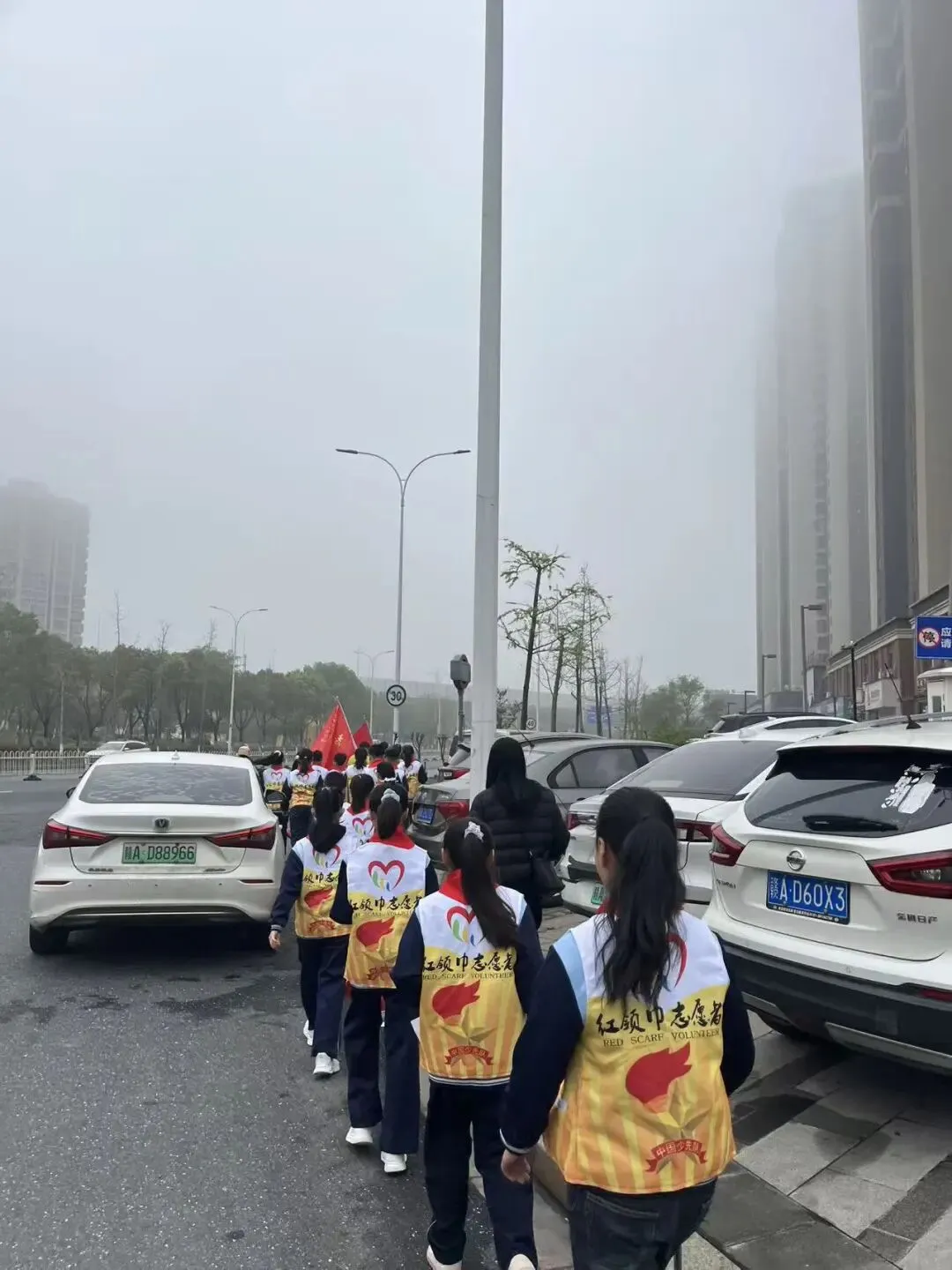 当日上午8时,参与活动的全体师生准时在校园内集合整队,带队教师逐一强调活动纪律、出行安全与文明规范要求。8时10分,师生队伍整装出发,迈着整齐的步伐前往莲塘镇人民公园烈士纪念碑,沿途秩序井然,尽显洪科小学师生良好的精神素养。