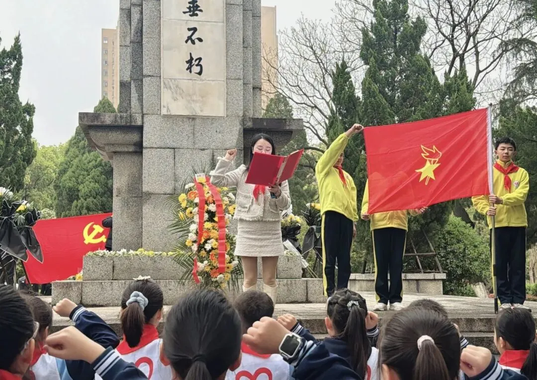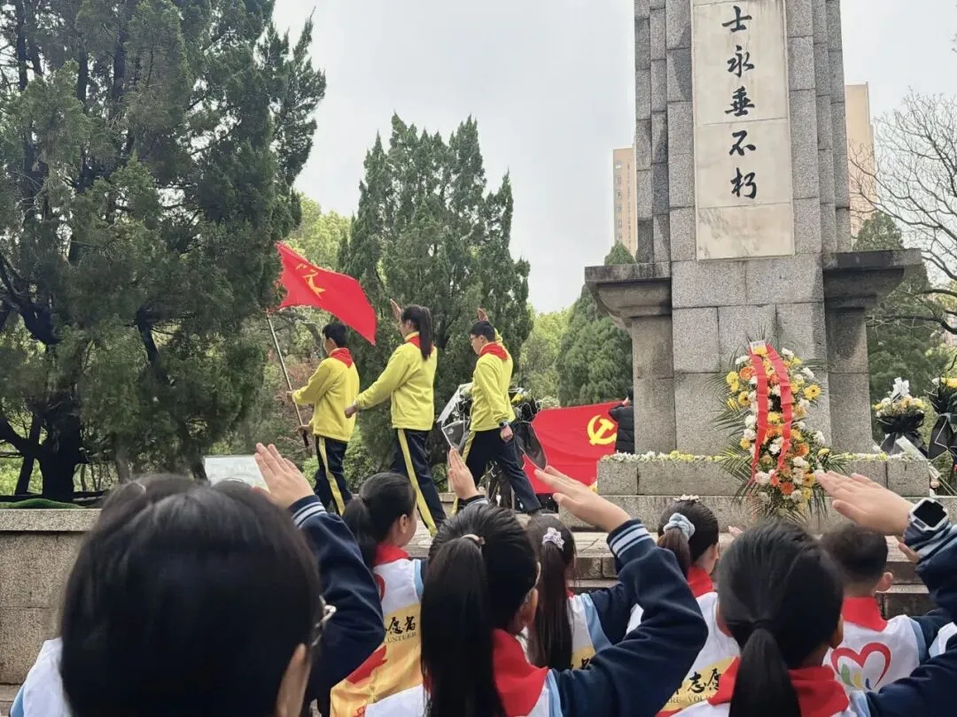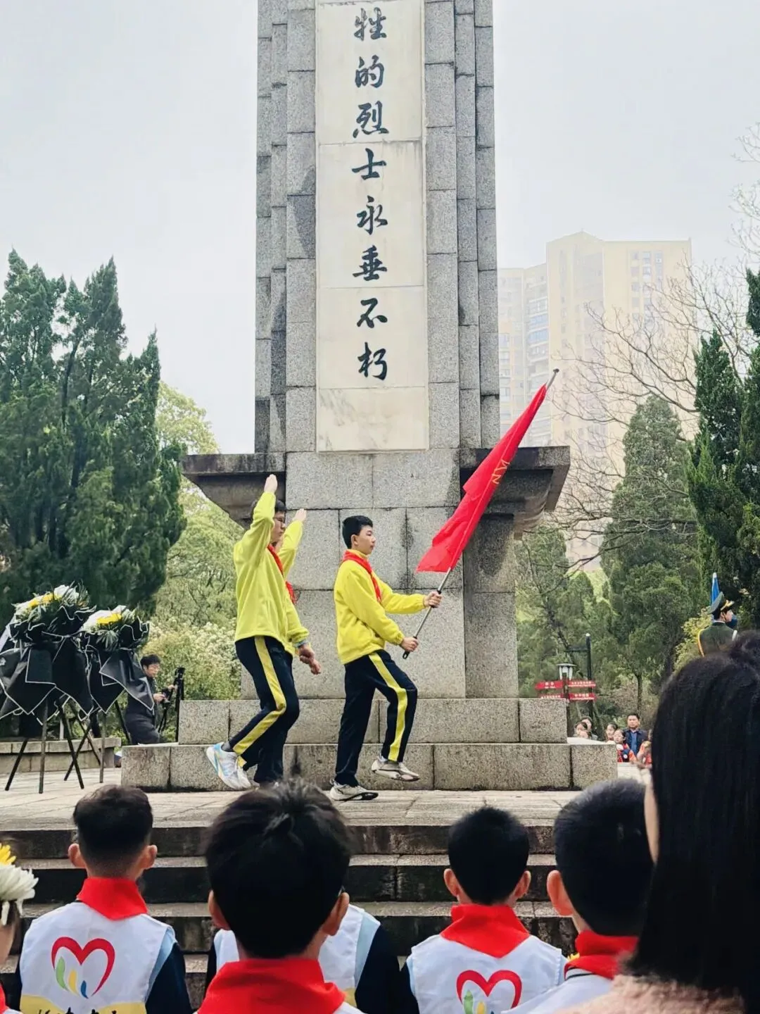 清风寄哀思,薪火传英烈。为深切缅怀革命先烈的不朽功勋,传承红色革命精神,厚植青少年爱国主义情怀,以党建带队建,引导广大少先队员铭记历史、砥砺前行,2026年4月1日上午,南昌县洪科小学组织师生前往莲塘镇人民公园烈士纪念碑,隆重开展“祭英烈承遗志,做先锋向未来”清明节祭英烈扫墓活动。学校党员教师代表、各班级优秀红领巾少先队员代表共同参与此次活动,以庄重仪式缅怀革命先烈,以赤诚之心传承红色基因。