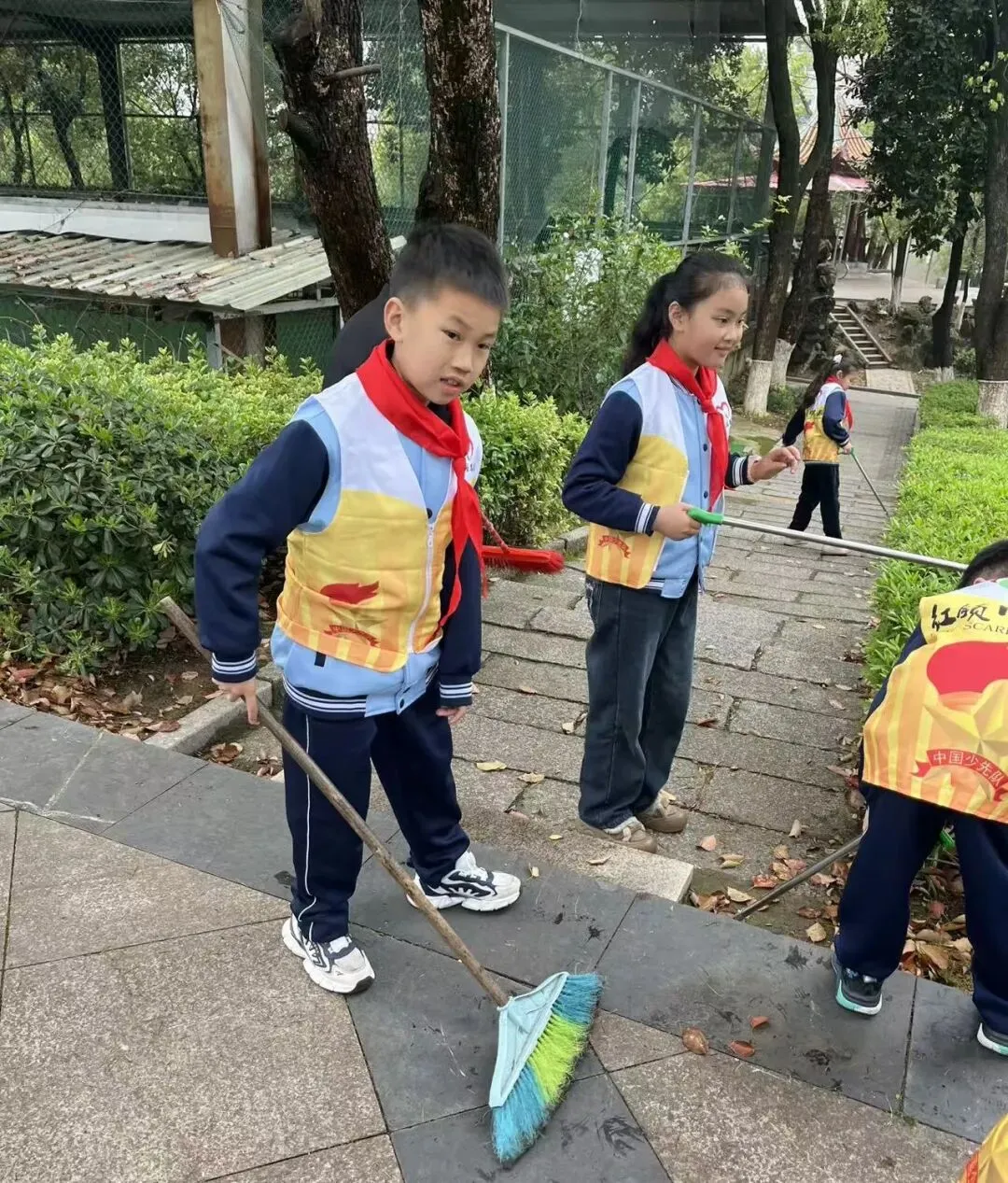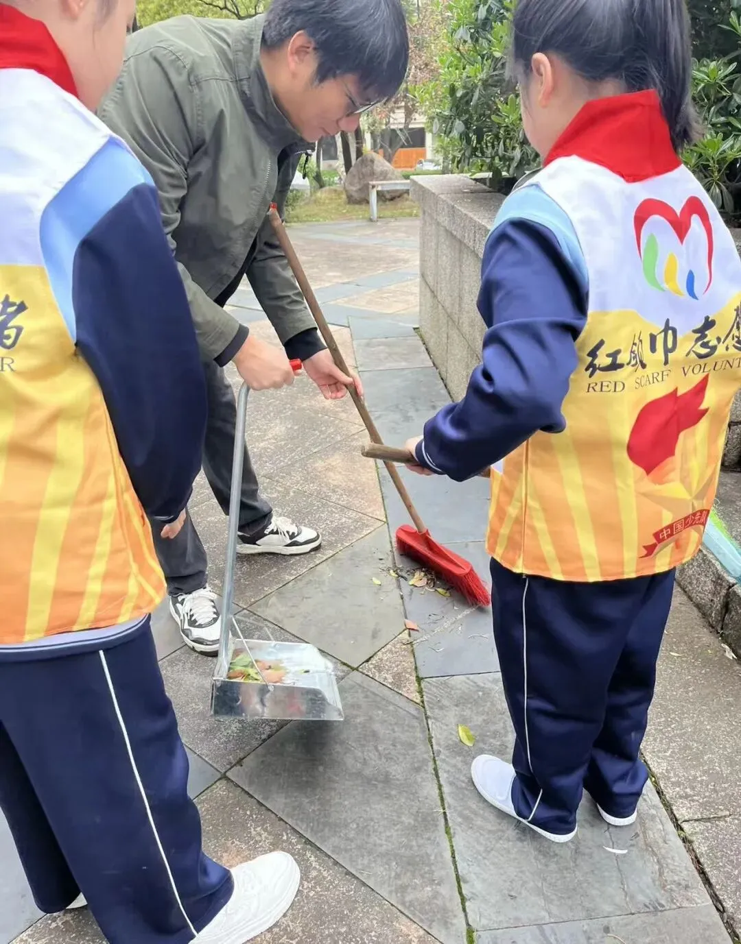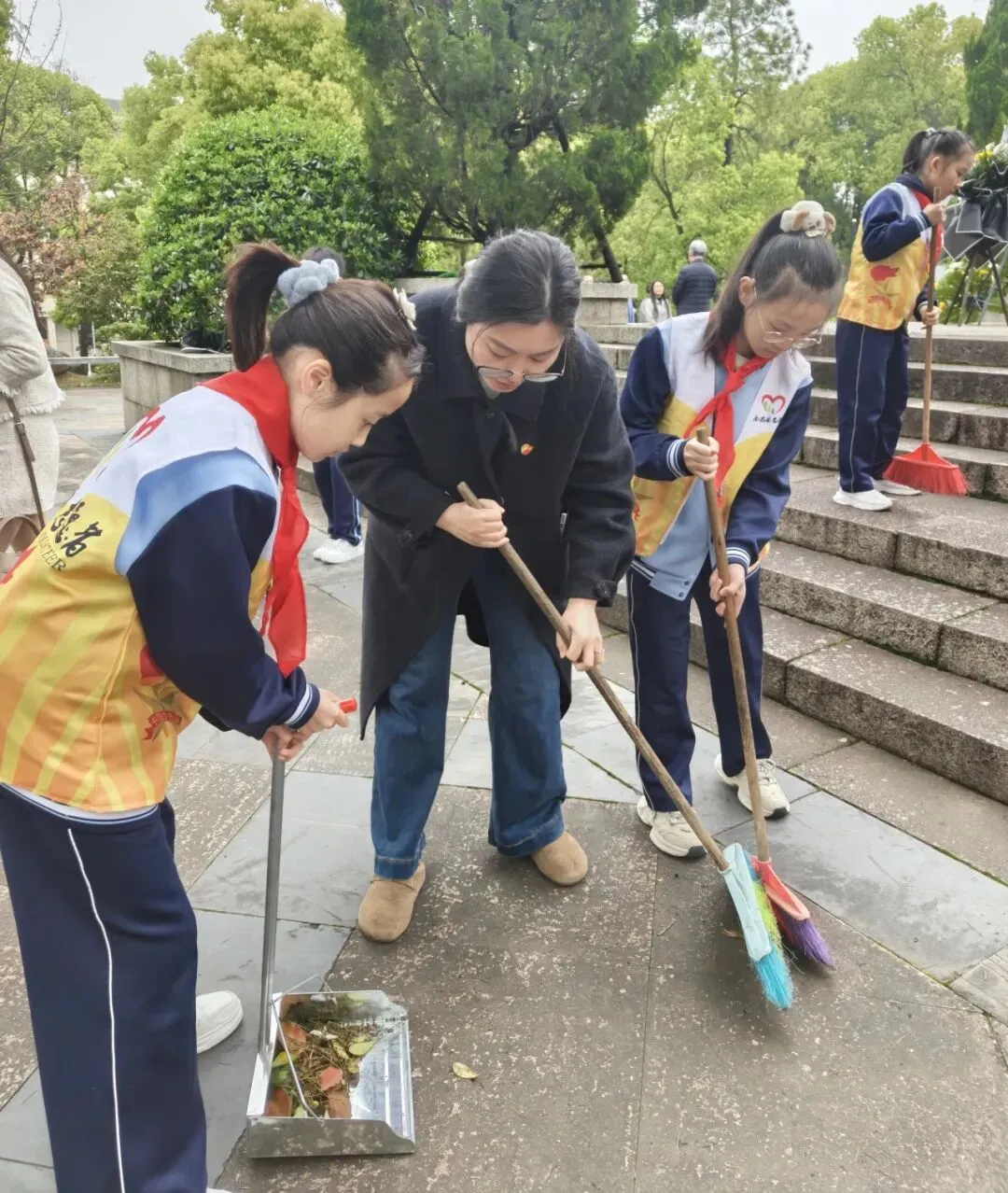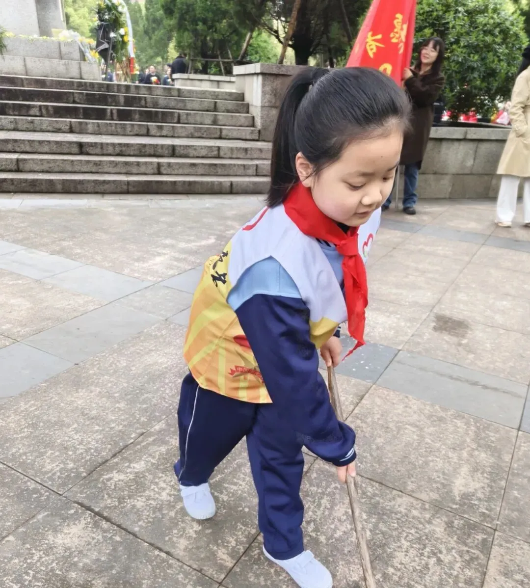扫墓实践环节中,少先队员们手持扫把、钳子等清洁工具,在教师的悉心指导下,认真清理烈士纪念碑周边的杂物、垃圾,细心擦拭碑体尘埃,以实际行动守护烈士安息之地,用质朴的行动表达对革命先烈的敬重与追思。