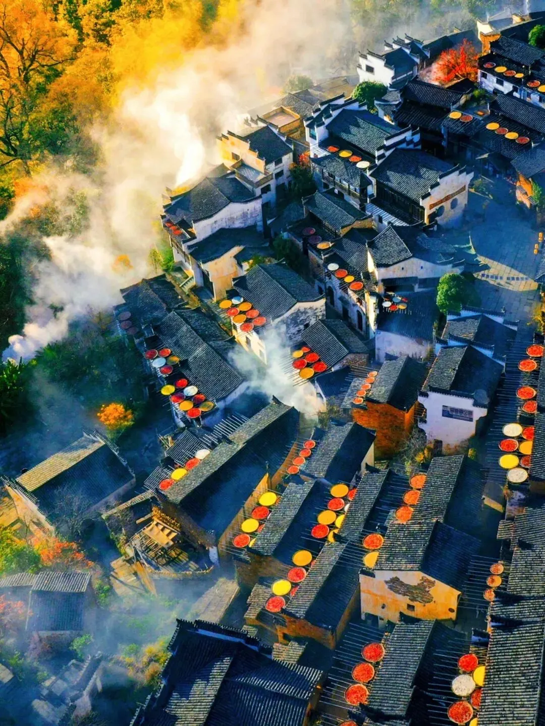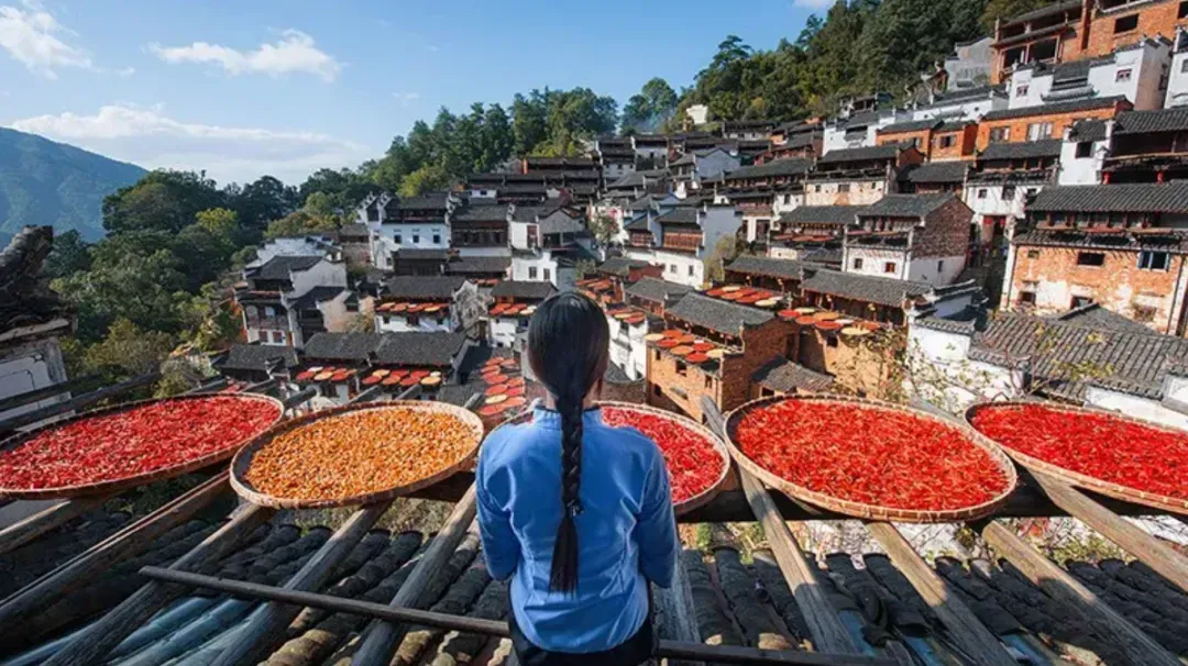 【天街】民居围绕水口呈扇形梯状错落排布,U形村落带您体验南方的“布达拉宫”徽式商铺林立,前店后坊,一幅流动的缩写版“清明上河图”家家户户屋顶晒盘云集,绘就出一幅“晒秋人家”风情画卷。