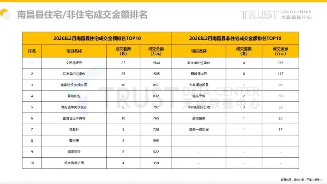 2026年1季度南昌城区及各板块房地产市场成交排行榜