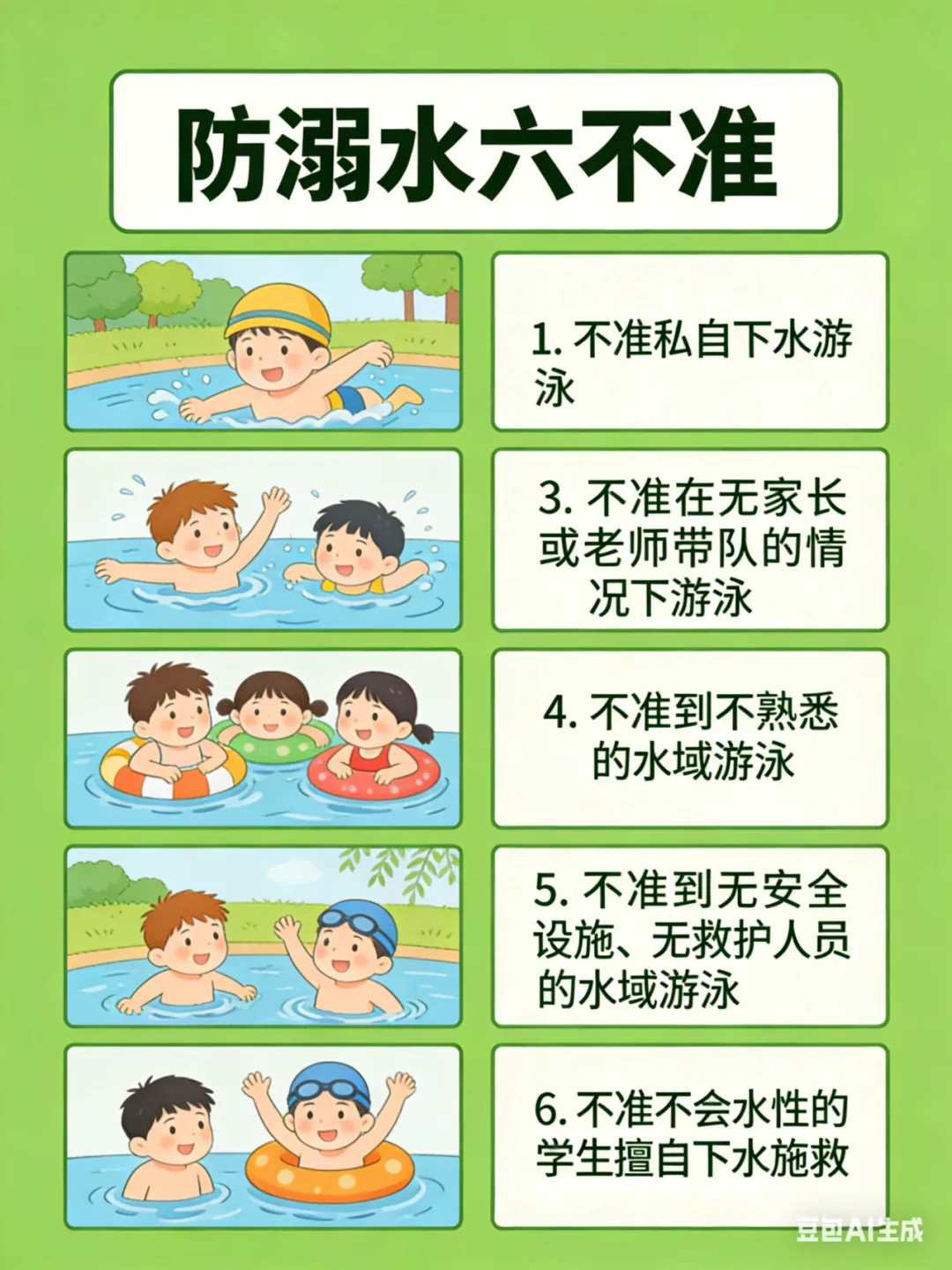 清明假期间,家长要教育好孩子,不要玩水或去有水的地方,特别注意不要让孩子靠近小河、池塘等区域,防止溺水事件发生。
