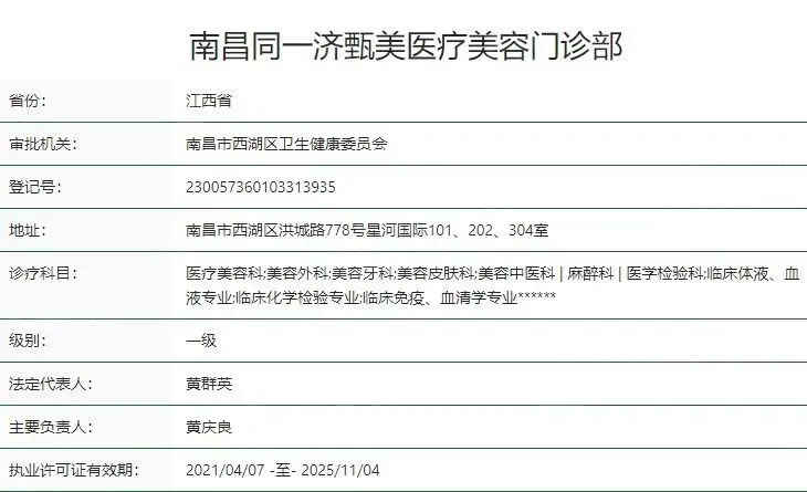 南昌同一济甄美医疗美容门诊部卫健委资质分享: