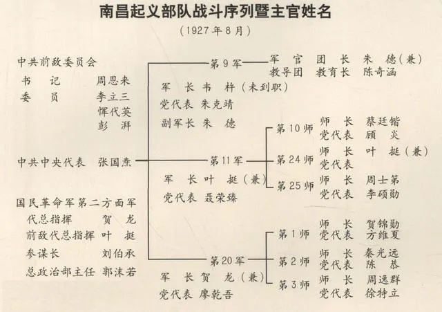 起义由周恩来、贺龙、叶挺、朱德、刘伯承、谭平山领导。1933年7月11日,中华苏维埃共和国临时中央政府根据中央革命军事委员会6月30日的建议,决定8月1日为中国工农红军成立纪念日。8月1日成为中国工农红军和后来的中国人民解放军的建军节。从1927年8月1日起中国人民有了自己的武装力量!