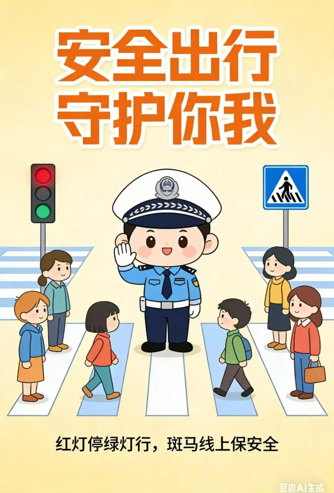 出行牢记交通安全,自觉遵守交通规则,不闯红灯、不横穿马路,过马路走人行横道并注意观察来往车辆。乘坐交通工具系好安全带,不乘坐无牌无证、超员超载车辆。骑行非机动车走非机动车道,不逆行、不追逐打闹。驾车时礼让行人,杜绝酒驾、疲劳驾驶,集中注意力谨慎驾驶。时刻将安全放在首位,文明出行,平安往返,守护自身与他人的生命安全。