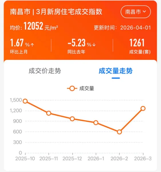 南昌新房的成交量也是继2025年国庆之后的新高,成交备案量在 1300 套左右,在今年的第三季度预计会有新项目推出,成交量也会出现新高度!