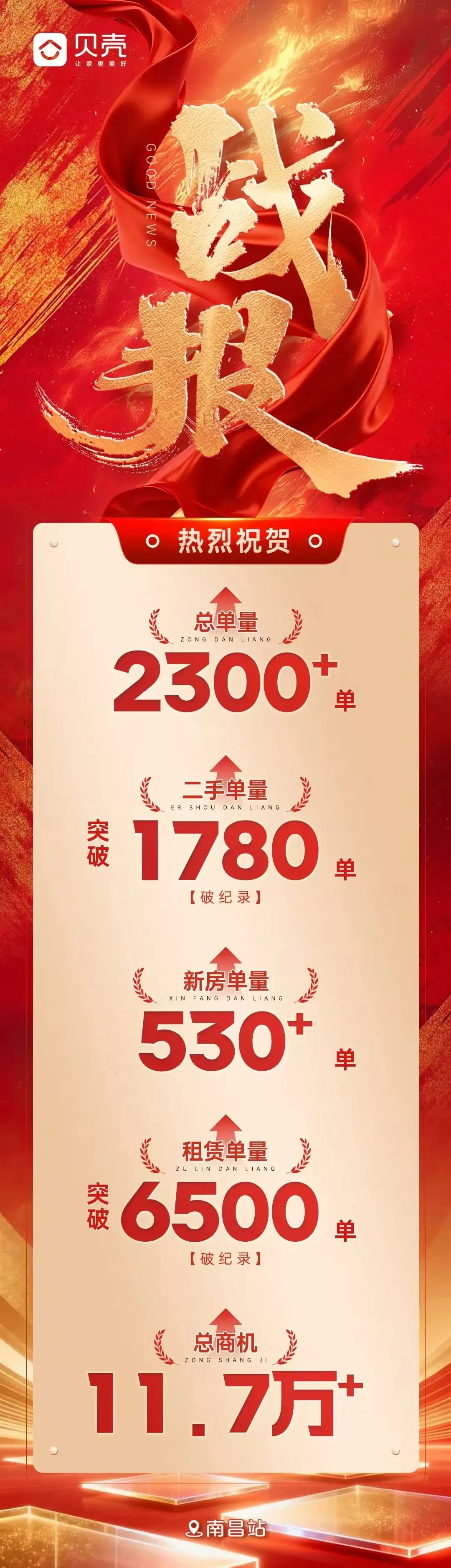 而二手房方面,贝壳签约量飙升至1780单,直接刷新南昌贝壳二手房月度最高纪录,打破成交天花板。