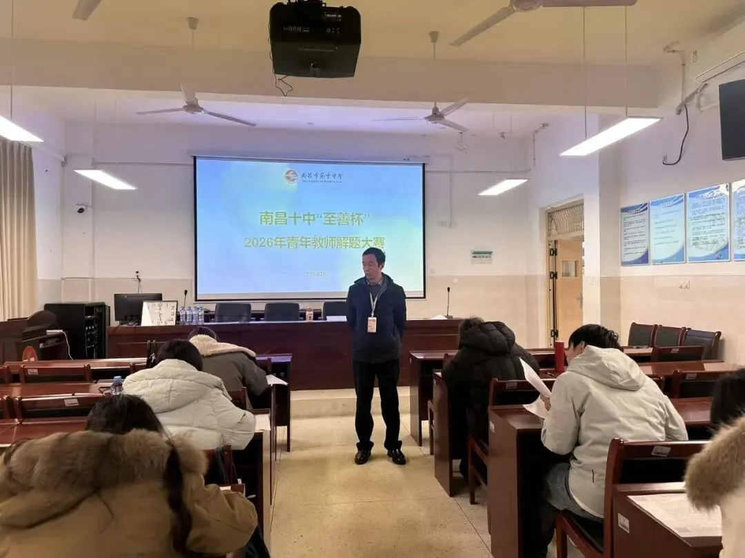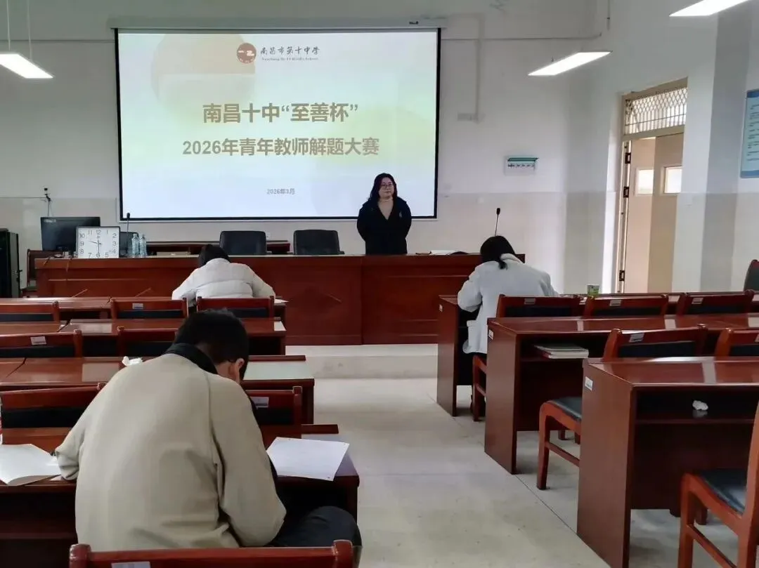 为促进青年教师专业发展,夯实学科核心素养,提升解题析题与课堂教学能力,完善和强化知识结构与能力体系,近日,南昌市第十中学隆重举行2026年“至善杯”青年教师解题大赛,以赛促研、以赛促学、以赛促教,为青年教师成长搭建专业赋能平台。