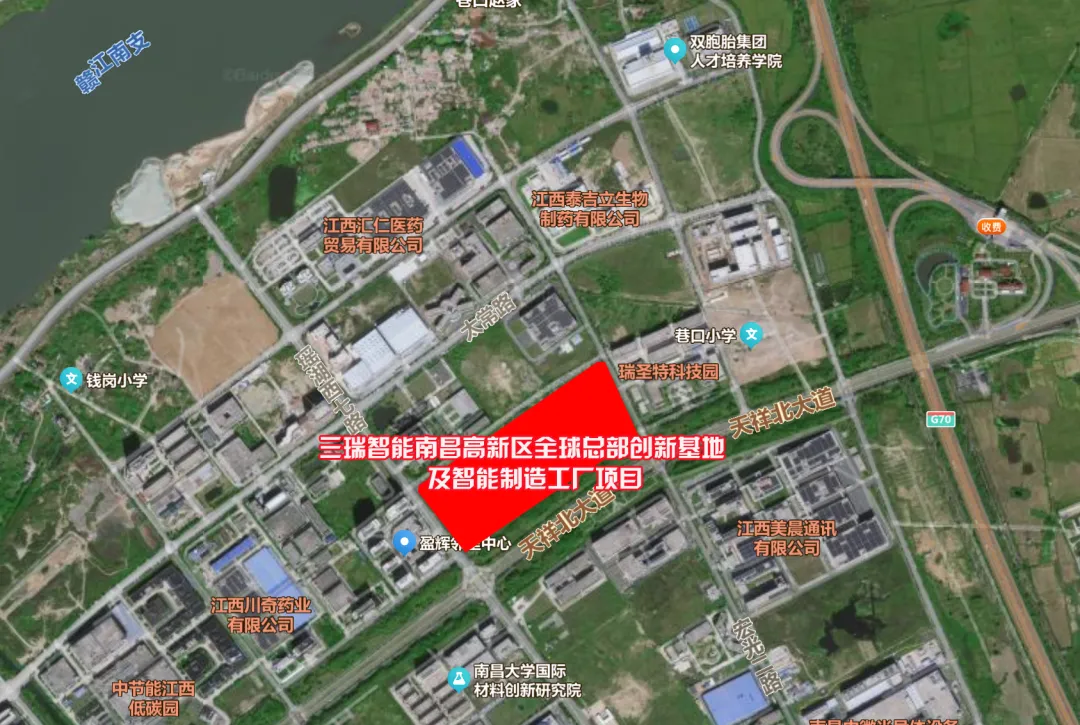 从区位看,该项目详细地址位于天祥大道以北、瑶湖西七路以东、子礼三路以西、太常南一路以南,项目申报单位为南昌三瑞智能科技股份有限公司,项目预计开工时间2026年9月,竣工时间2029年12月。