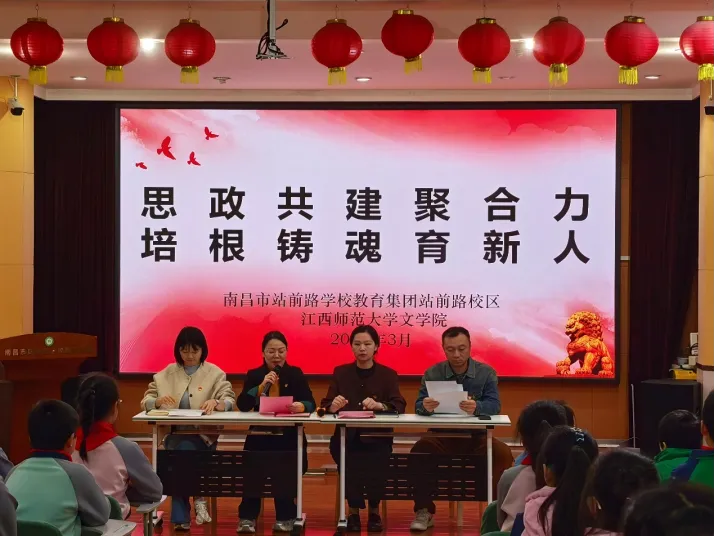 3月31日上午,江西师范大学文学院与南昌市站前子羽学校站前路校区“大思政课共建实践基地”签约挂牌仪式暨第一期思政共建活动在站前子羽学校站前路校区顺利举行。师生代表齐聚一堂,围绕“思政共建聚合力 培根铸魂育新人”主题,共同开展红色文化教育实践活动,推动校地协同育人落地见效。