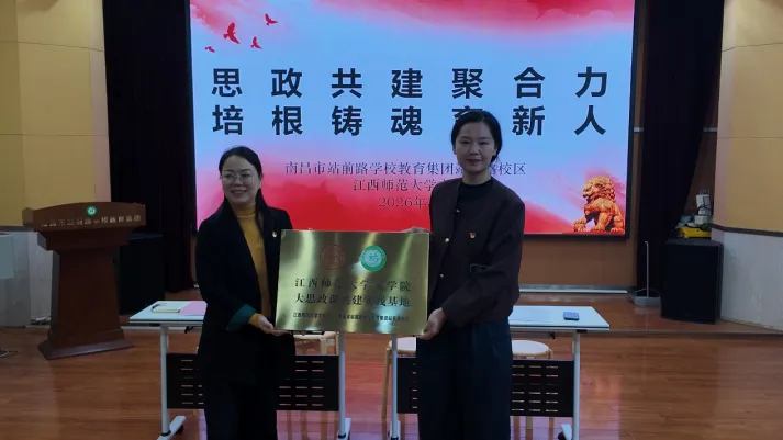 在双方代表的共同见证下,江西师范大学文学院与南昌市站前子羽学校站前路校区正式签署《大思政课共建实践基地合作方案》,并共同为“大思政课共建实践基地”揭牌。