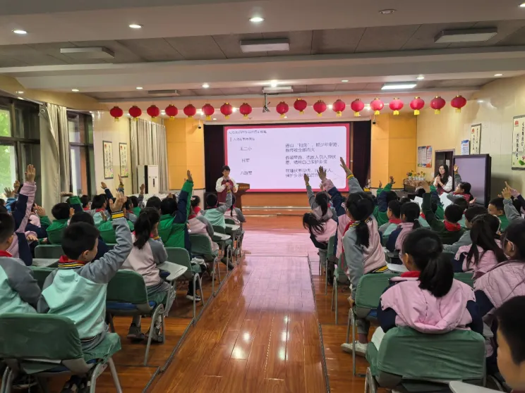 活动现场,文学院“秉烛班”学生代表带领站前路学校学生,围绕革命先烈刘胡兰的成长历程,开展互动式角色扮演游戏,学生们在情境中面临抉择,感受革命精神的力量。在红色知识连线、看图猜红色人物环节,学生们踊跃举手、积极抢答,现场氛围热烈。活动通过寓教于乐的方式,将红色文化融入互动体验,进一步增强了学生的民族认同感与爱国情怀。