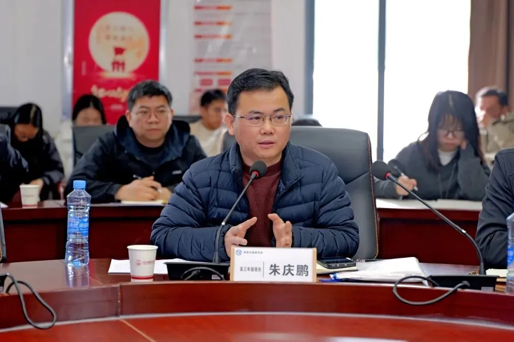 高三年级组长朱庆鹏紧接着汇报二轮复习整体方案,紧扣一模暴露的问题,确立“精准突破、分层推进、提质增效”的复习核心目标,细化复习时间规划、阶段任务与落实路径,重点部署专题突破、错题复盘、限时训练、临界生帮扶四大核心举措,要求各学科立足教学实际,整合资源、优化课堂,全力提升学生知识应用能力与应试技巧,保障二轮复习落地见效,汇报内容详实、思路清晰,获得在场教师一致认可。