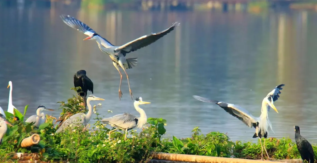 这个公园大到什么程度呢,整整2500多亩,你要是想走完一圈得花小半天,但关键不是大,是它把湿地该有的东西都留住了,成片的芦苇荡、开阔的水面、曲折的栈道,还有那些你在城市里很少见到的水鸟,白鹭、苍鹭、野鸭,它们就在那生活,不是动物园里圈养的那种,是真的野生的,你站在栈道上能看到它们在水边觅食,在芦苇丛里起落,这种生命力扑面而来的感觉,是那些精心设计的公园给不了的。