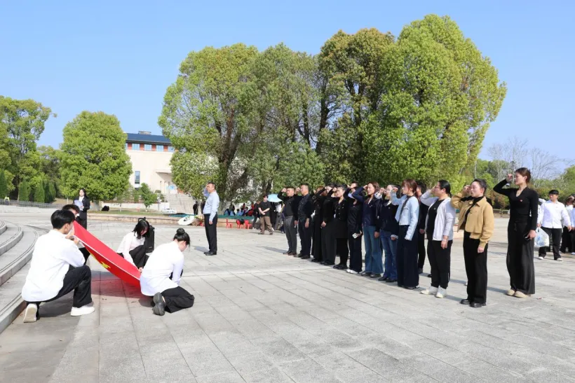 在鲜红的党旗下,全体党员整齐列队、高举右拳,庄严重温入党誓词。铿锵有力的誓言响彻陵园,充分展现出新时代师生不忘初心、牢记使命、矢志不渝跟党走的坚定信念与责任担当。仪式结束后,师生们怀着崇敬之心,有序瞻仰烈士纪念碑,缓步绕行、静默追思,深切缅怀革命先烈的英勇事迹与崇高精神,从中汲取奋进力量、传承红色基因。