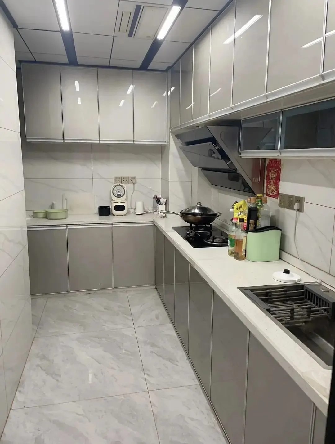 【其他】:房子是现代风格,装修很好,房子面积总共90m2,我看了很多套才定下这套的,两个房间都朝南,而且厨房阳台的面积也很大,阳台是落地窗,房子是电梯房,我觉得比附近步梯的单间好太多了😂,最近即可入住,家具电器一应俱全