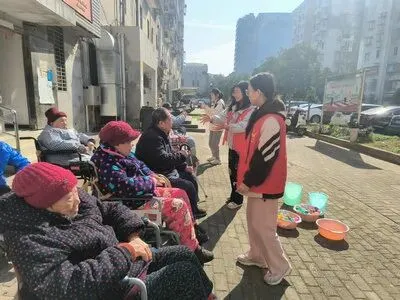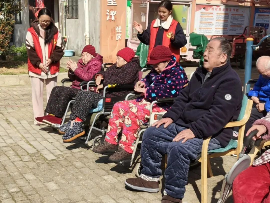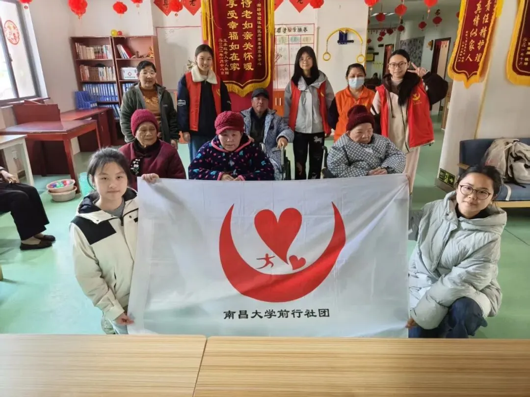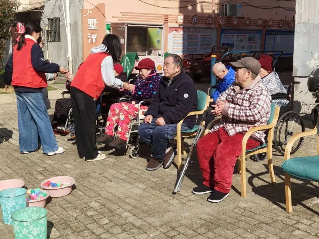 冬日的阳光洒满墅溪养老院的庭院,银发与红马甲交织成一幅温馨画卷。近日,南昌大学前行社团的志愿者们带着满腔热忱来到我院,为老人们精心策划了一场别开生面的户外活动,让这个寒冷的季节因“青春陪伴”而暖意融融。