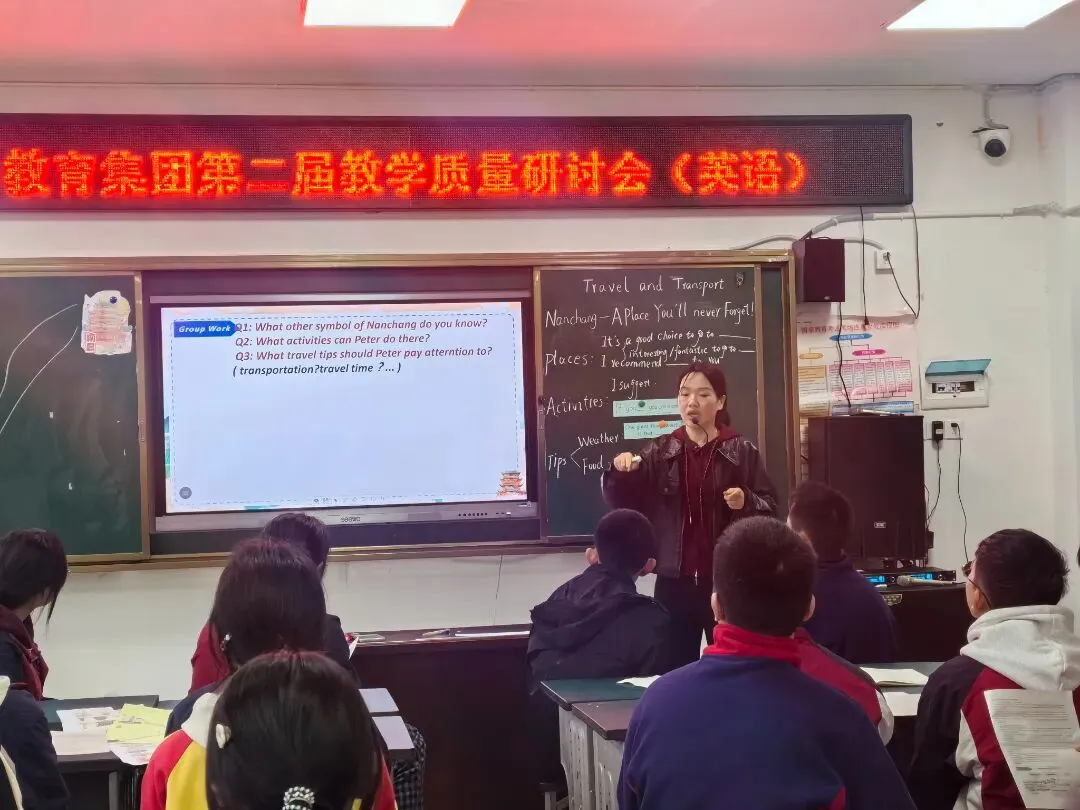 高新校区初三英语骨干教师万婷婷执教“Travel and Transport”英语话题复习示范课。课程贴合中考考点与学生学情,融合南昌本土文旅资源,以“设计旅游攻略”为主线,将滕王阁文化、南昌风土人情融入教学,打造了实用又有感染力的英语写作复习课。
