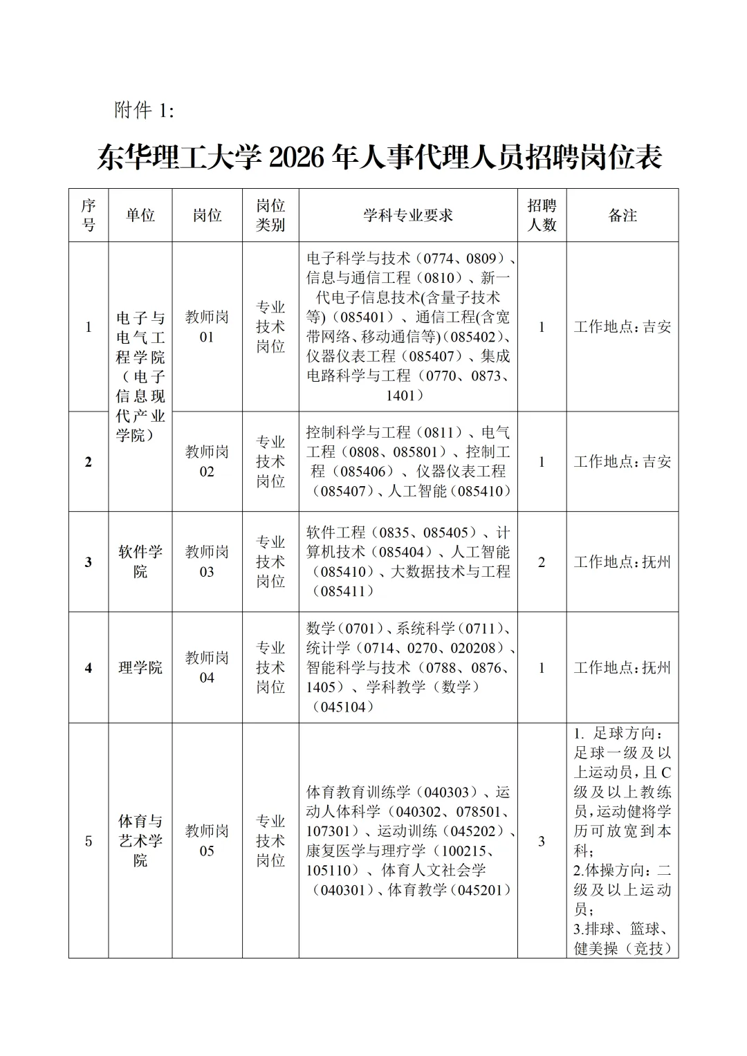 附件1:东华理工大学2026年人事代理人员招聘岗位表.docx