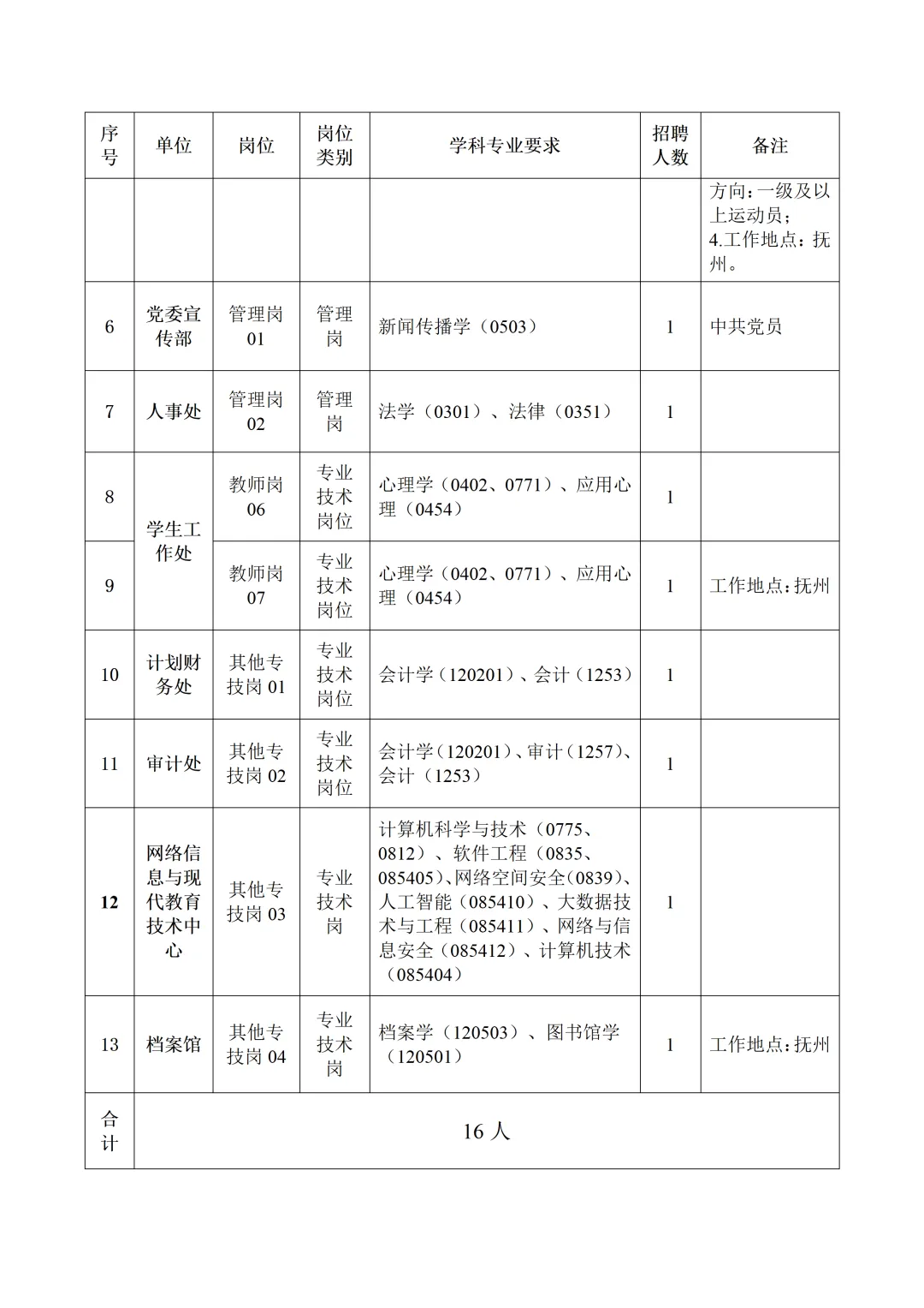 招聘计划共16名,具体招聘岗位及要求详见《东华理工大学2026年人事代理人员招聘岗位表》(附件1,以下简称《岗位表》)。