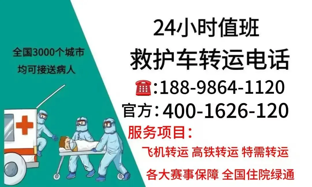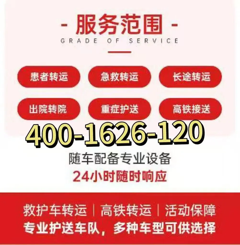 您好,我们是120救护车出租转运公司,给您提供正规非急救转运服务,如果您是病人家属,需要找救护车,那么直接找我就行,价格合适,出车快。我们的业务是针对:大型活动赛事保障、长途接送病人,跨省出院转院、火车和飞机转运病人。我们专业的团队司机和医护人员,随时随地可以接送病人,收费每公里7块左右。