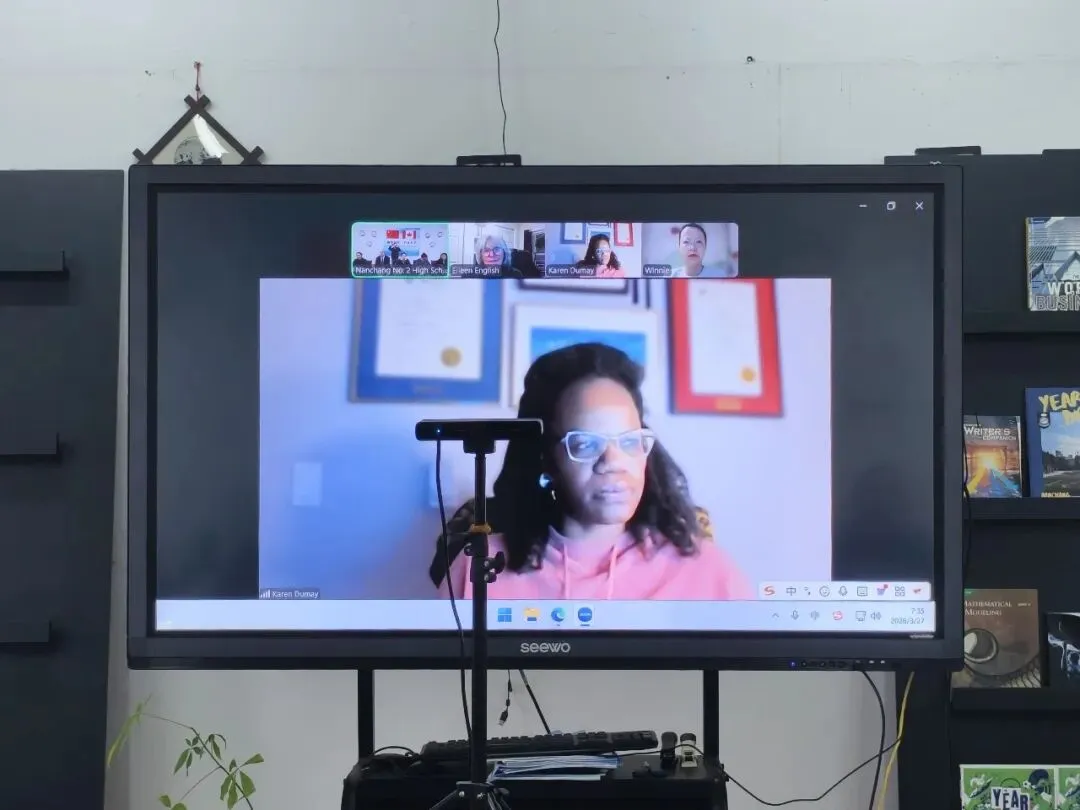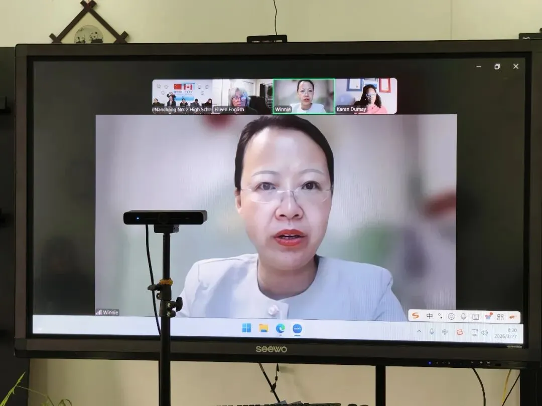 3月27日上午,加拿大新斯科舍省(简称NS省)教育部年检官员Eileen English和 Karen Dumay通过视频会议形式,向南昌二中党委书记万瑛反馈了本年度中加班的年检情况。加拿大NS省教育部高中项目总监Ms.Winnie,国际部主任朱欣艳,中加班加方校长Mr. Stanley,国际部负责人詹璐一同参加了会议。年检官员对南昌二中中加班过去一年的工作给予了极高的赞誉,肯定了其在中外合作办学中取得的丰硕成果。