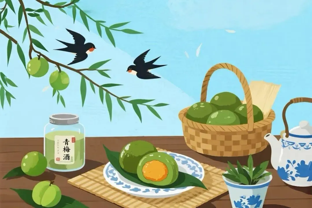 清明时节,江南一带有吃青团子的风俗习惯。青团子是用一种名叫“浆麦草”的野生植物捣烂后挤压出汁,接着取用这种汁同晾干后的水磨纯糯米粉拌匀揉合,然后开始制作团子。