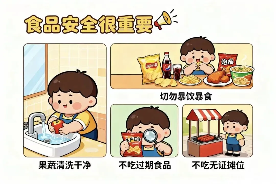 请家长督促孩子注重饮食安全,把好饮食关口,不购买路边无证摊贩食品,不吃生冷不洁与变质食物,饭前便后认真洗手,养成良好卫生习惯。清明假期外出踏青时,不采摘、不品尝不明野菜野果,远离有毒野生植物,严防食物中毒,守护孩子身体健康。