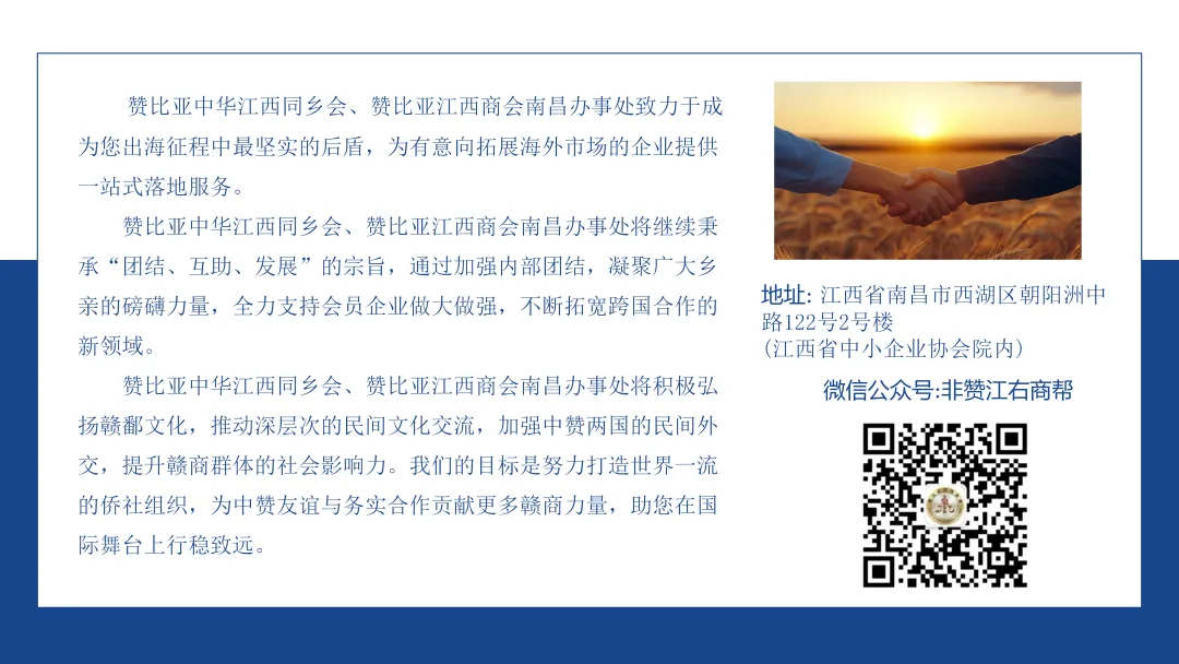 >赞比亚中华江西同乡会、赞比亚江西商会南昌办事处简介