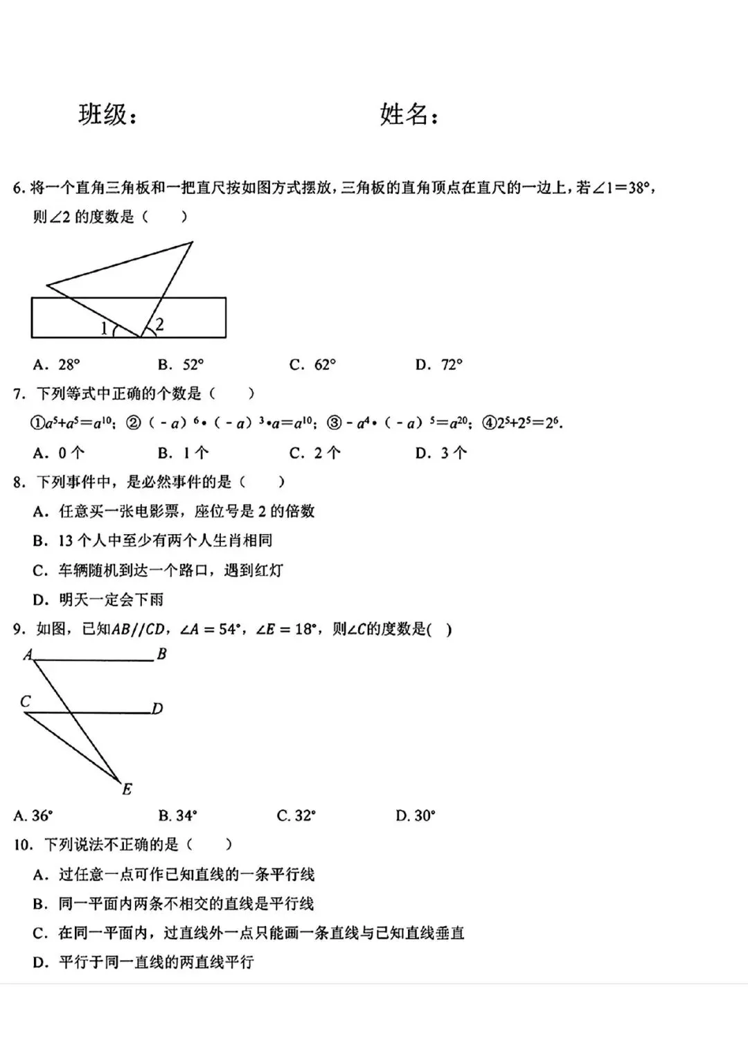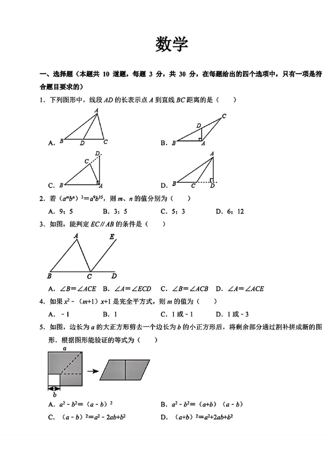 2425学年七八九年级下学期各科pdf版本试卷下载地址: