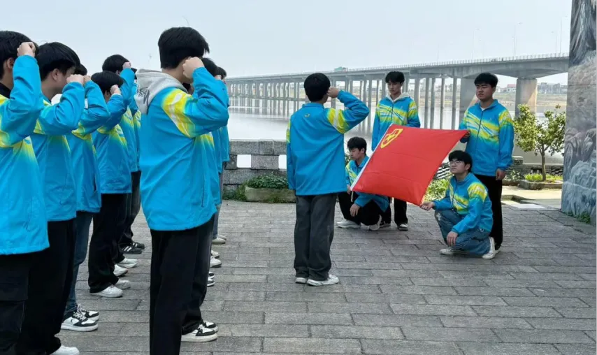 “我志愿加入中国共产主义青年团,坚决拥护中国共产党的领导……”在鲜红的团旗和活动横幅下,活动迎来高潮。来自24101班的优秀团员代表丁智超带领全体团员面向团旗,高举右拳,重温入团誓词。铿锵有力的誓言在谢埠老街的青石板路上空久久回荡,既是对革命先烈的告慰,也是新时代技工院校学子“技能报国”决心的庄严宣告。宣誓仪式后,团员代表丁智超发表了感言:“站在先烈们战斗过的土地上宣誓,我感到无比神圣。我们一定会珍惜来之不易的幸福生活,努力学习专业技能,走技能成才、技能报国之路。”