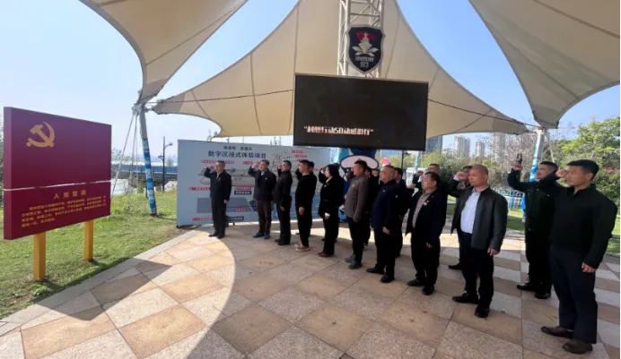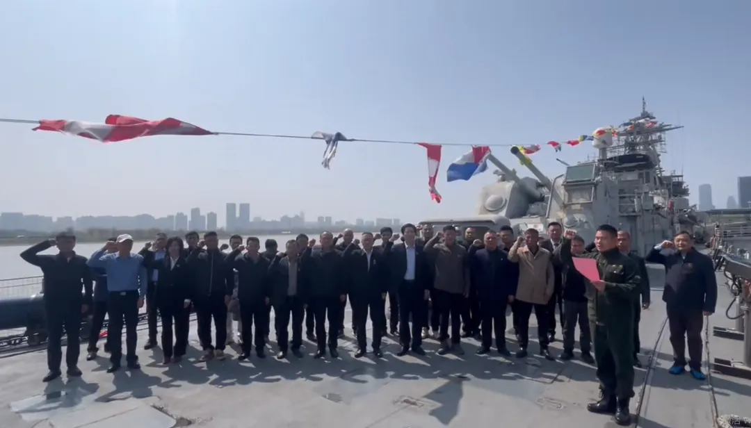 仪式现场,全体党员面向鲜红的党旗,举起右拳,由党支部书记魏海华领誓,庄严重温入党誓词,铿锵有力的誓言回荡在南昌舰上空,彰显了党员干部不忘初心、牢记使命、忠诚履职的坚定信念;全体退役军人面向南昌舰上的军旗,重温军人誓词,回顾军旅生涯,铭记军人使命,坚定了“退伍不褪色、退役不褪志”的信念与决心。