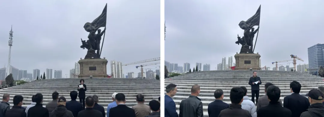 清晨,全体人员怀着崇敬的心情,在建军雕塑广场集合签到,有序列队来到英烈雕塑前,开展祭奠仪式。全体人员肃立默哀3分钟,深切缅怀革命先烈、军人英烈的丰功伟绩,表达对英烈们的崇高敬意与深切哀思,用最朴素的方式寄托对英烈的缅怀之情。退役军人代表邓琴、罗志昆在发言中表示,将永远铭记英烈事迹,传承英烈精神,永葆军人本色,立足本职、担当作为,以实际行动践行退役军人的责任与使命。祭奠仪式结束后,全体人员列队步行前往南昌舰主题公园,衔接后续参观活动。