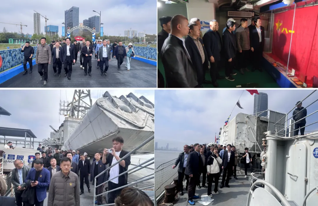 抵达南昌舰主题公园后,全体人员有序登舰参观。在讲解员的带领下,大家先后参观了南昌舰的舰体、武器装备、荣誉展厅等区域,认真聆听南昌舰作为国产第一代导弹驱逐舰的服役历程、战斗事迹,详细了解其在守护国家海疆、捍卫民族尊严中作出的重要贡献。一幅幅珍贵的照片、一件件斑驳的实物、一段段感人的事迹,让每一位退役军人都深受触动,仿佛重温了那段峥嵘岁月,进一步感悟了强军爱国、忠诚奉献的英雄精神。