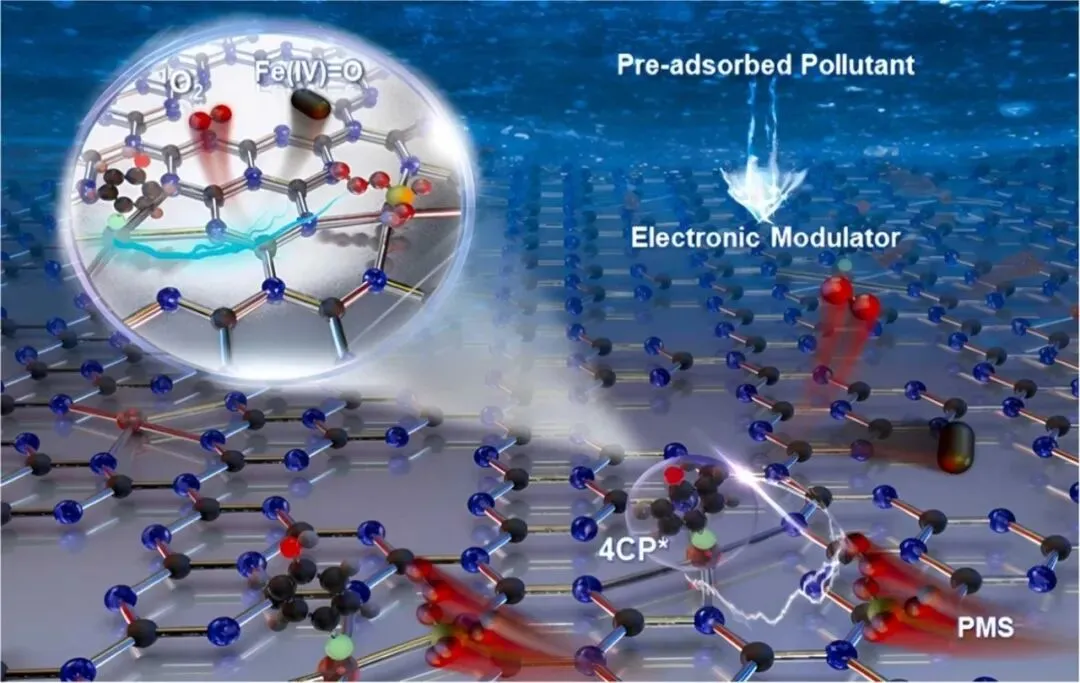 本研究提出了一种新颖的“污染物触发催化”模式,与将污染物视为被动处理对象的传统策略不同,该模式利用预吸附的污染物作为电子调控剂,优化锚定在多孔氮化碳上的单分散铁单原子对过一硫酸盐的活化,用于水体修复。通过结合催化测试、光谱分析和密度泛函理论计算,阐明了预吸附的富电子4-氯酚对铁位点电子构型及过一硫酸盐活化机制的影响。预吸附污染物增强了铁位点的巴德电荷转移,并使铁3d带中心上移,从而强化了过一硫酸盐的吸附,降低了活化能垒,将主导反应路径转向Fe(IV)=O和单线态氧而非自由基,实现了15分钟内100%去除4-氯酚,反应速率较原始铁单原子催化剂提升了5.34倍。研究结果表明,底物诱导的单原子铁位点电子调控是调控活性物种生成、提升催化性能的有效途径。通过重新定义污染物作为活性电子调控剂,这项工作为可持续水体修复提供了一个可扩展的新范式,同时提升了氧化能力和环境适用性。