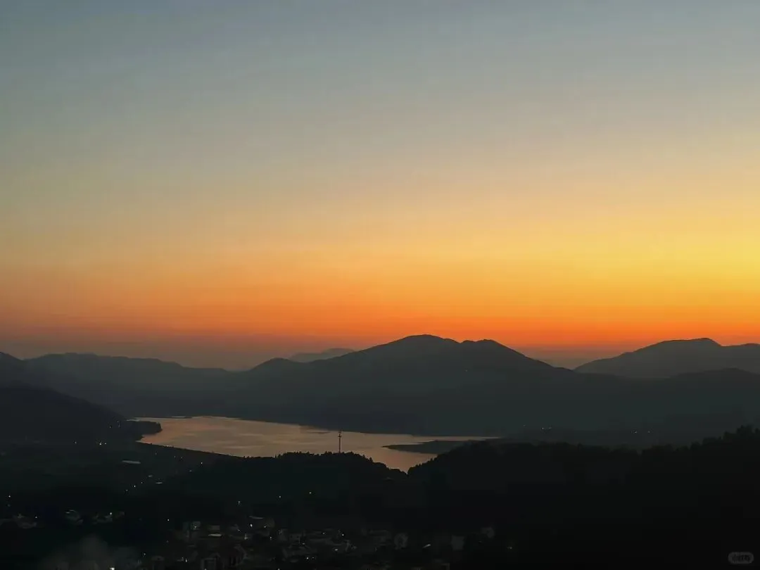 夕阳西下,整座城市镀上金色光芒,山色温柔。