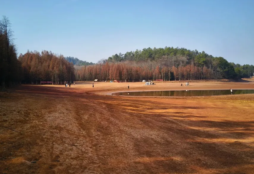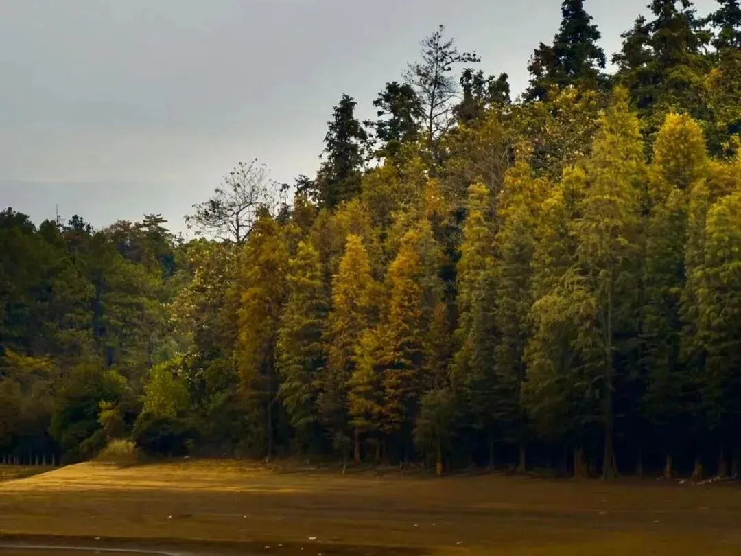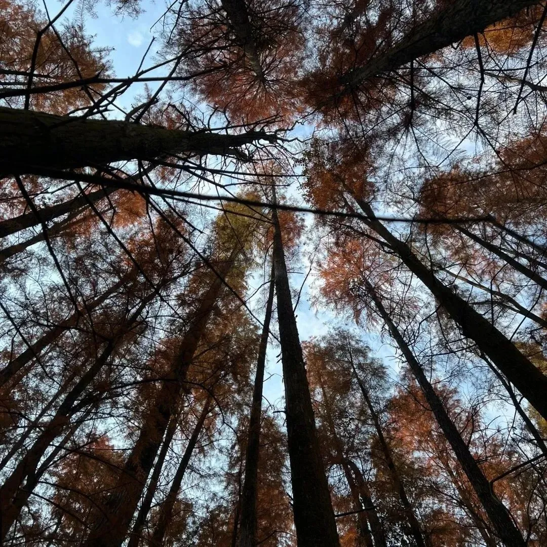 山脚水杉林新绿萌发,斑驳光影间,随手一拍都是森系大片。