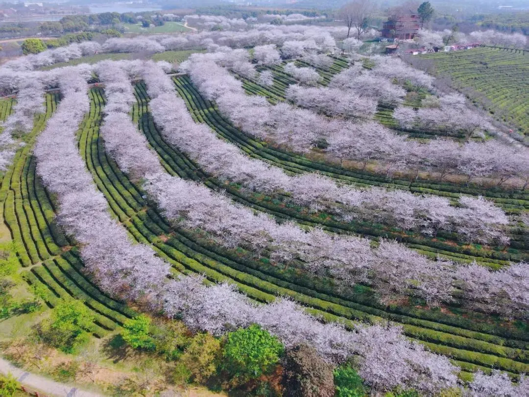 凤凰沟素有“花开四季,最美茶海”之称,是南昌近郊的田园秘境。清明时节,赏樱正当时,同时但绣球花、海棠、梨花次第绽放,千亩茶海吐露新绿,满目春色令人心醉。