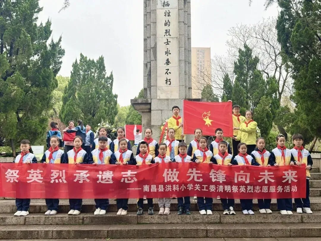 4月1日上午,南昌县洪科小学组织党员教师代表和优秀少先队员代表,前往南昌县革命烈士纪念塔开展 “祭英烈承遗志,做先锋向未来” 清明节祭英烈扫墓活动,通过出旗、唱国歌、讲述英雄事迹、敬献花篮、重温入队誓词等庄重仪式缅怀先烈,还组织少先队员清理纪念碑周边环境,以此传承红色基因、开展爱国主义教育,为师生带来深刻精神洗礼。