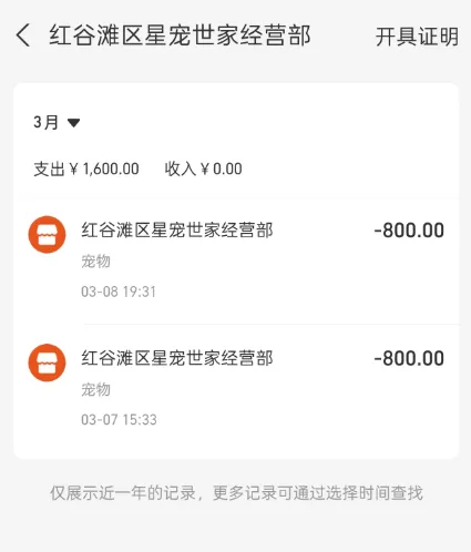 更让汤女士产生质疑的是,“这家店地图搜索时是有猫有狗宠物生活馆,去的已经变成南昌大型宠物猫狗交易市场。”另据汤女士出示的购买小猫记录,收款方为“红谷滩区星宠世家经营部”;在其店内购买宠物粮,其收款方又是“红谷滩宠溺私宠宠物店(个体工商户)”。
