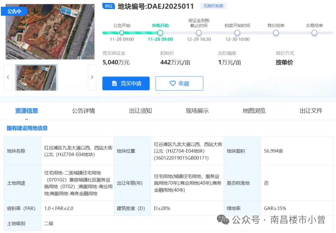 南 昌 市 政 / 红 城 投 拿下 九龙湖 JLH603 - D02 地块:占地52亩,容积率1.8,楼面价3725元,位于怀玉山大道以东,九龙大道以西,景德镇街以南,集嘉坊路以东,风顺东街以北,地铁二号线国博站旁,地铁四号线怀玉山大道站也非常近,该地块学区南师附小腾龙校区【九年制【根据2025年学区划分】。