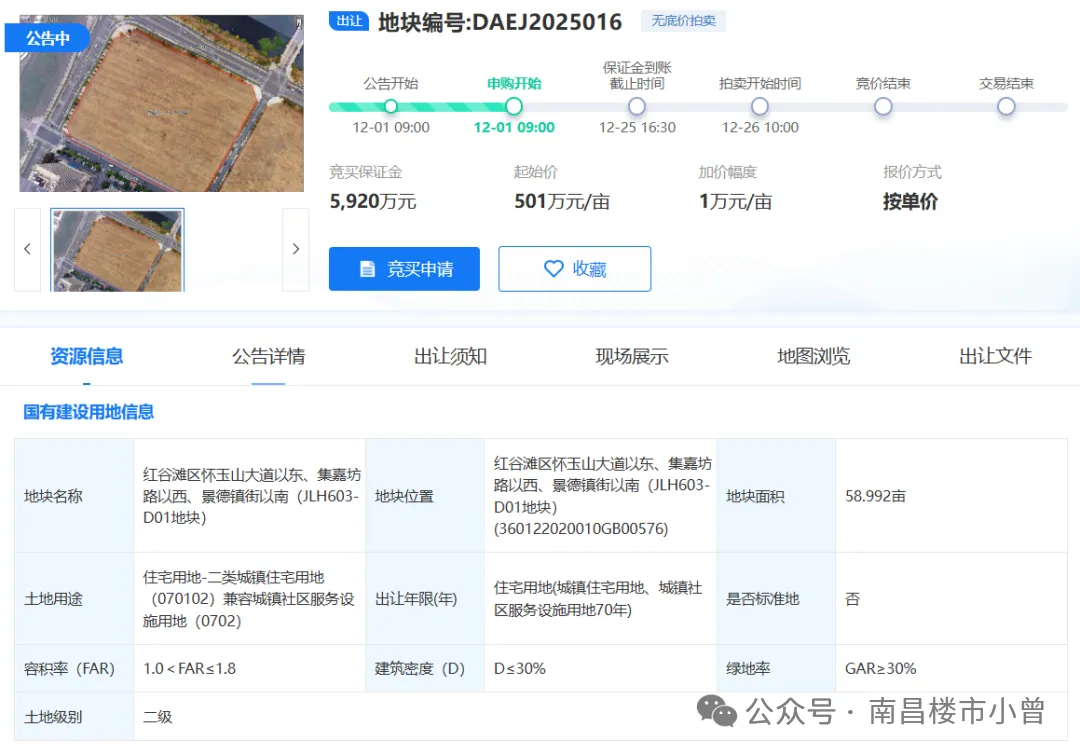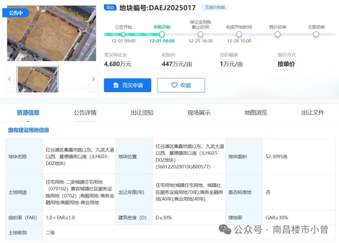 2025年12月26日,南 昌 市 政 / 红 城 投 拿下 九龙湖 JLH603 - D01 地块,占地59亩,楼面价4175,容积率1.8,位于九龙湖的怀玉山大道以东,集嘉坊路以西,景德镇街以南,风顺东街以北,地铁二号线国博站旁,地铁四号线怀玉山大道站也非常近,该地块学区南师附小腾龙校区【九年制【根据2025年学区划分】 。